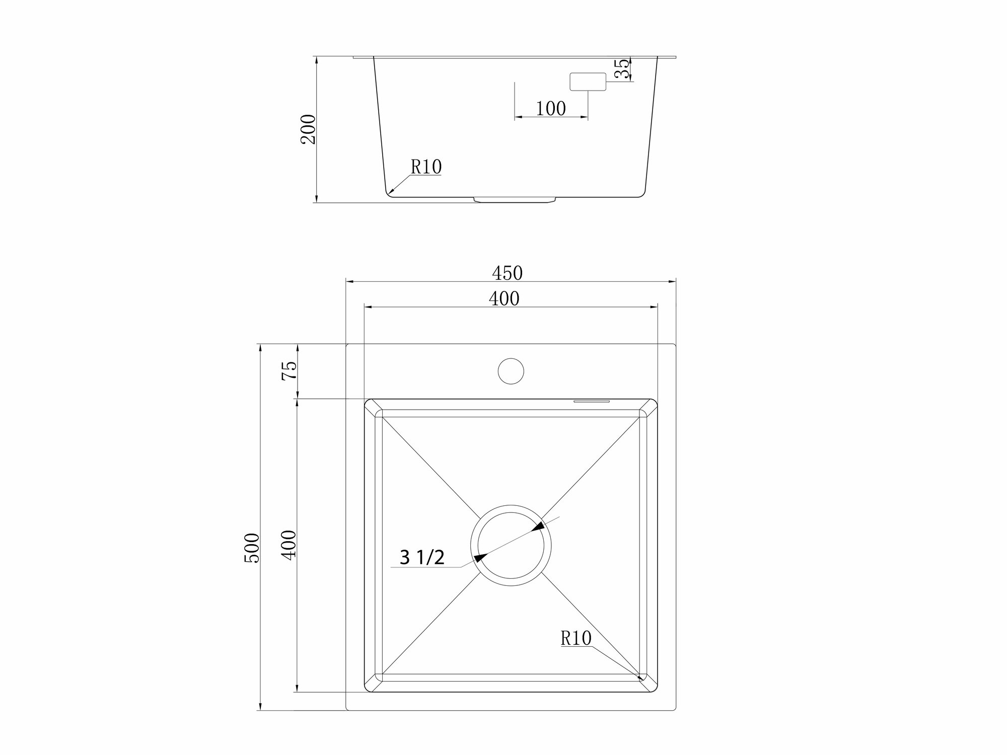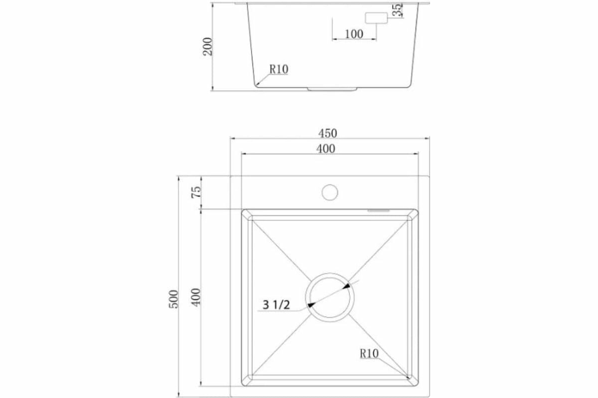 Кухонные мойки Комплект "Юкинокс" Практика PRB450.500 -GT10C 0CW с выпуском