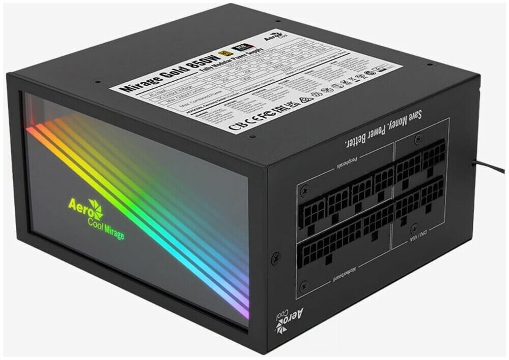 Блок питания 850W AEROCOOL MIRAGE GOLD FULLY MODULAR (ATX, ARGB, 20+4 pin, 120mm fan, PCI-E 6+2Px3, 8xSATA) (Mirage Gold 850W FM)