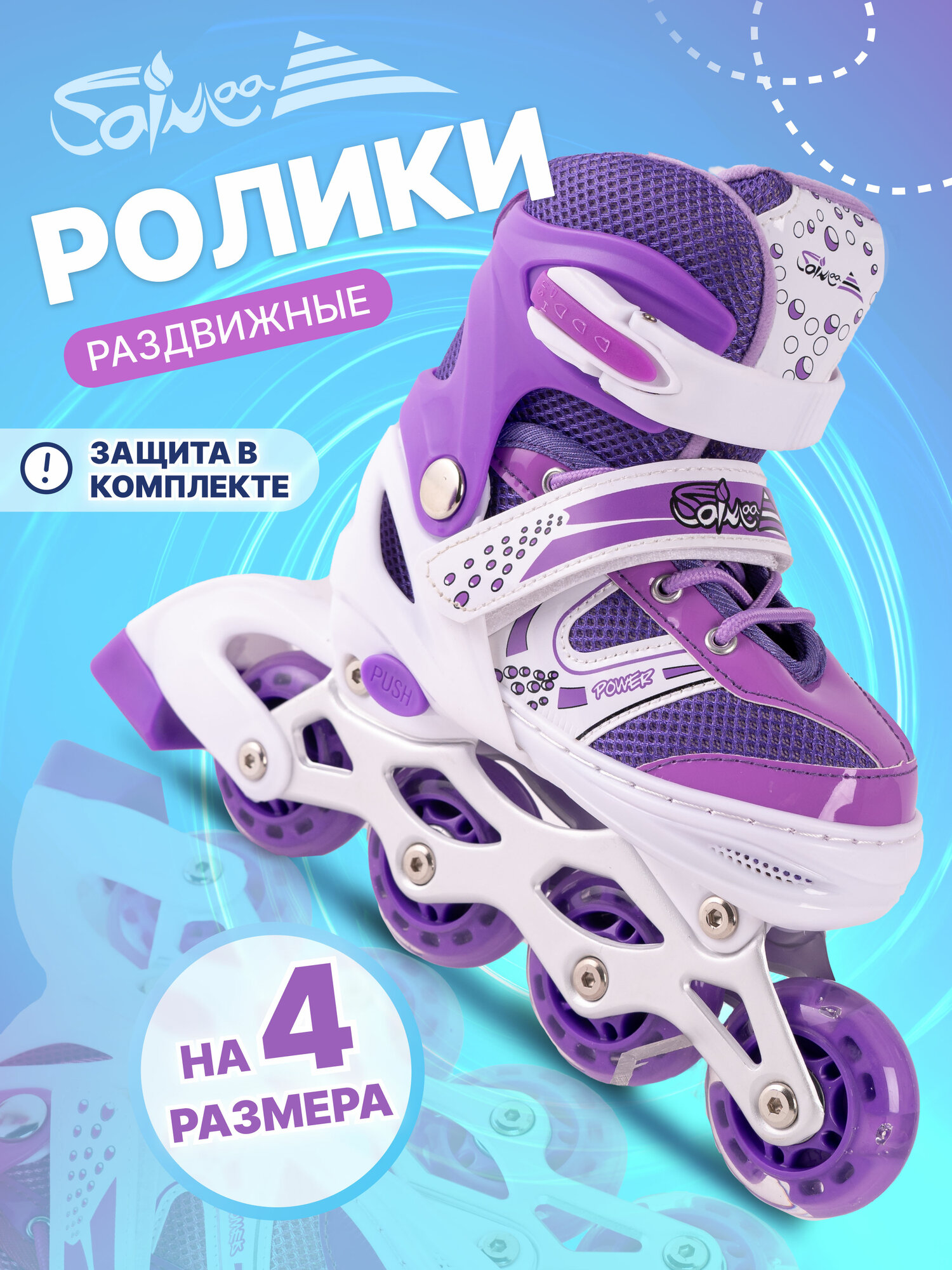 Роликовые коньки Роликовые коньки с защитой раздвижные детские, S (31-34) цвет фиолетовый