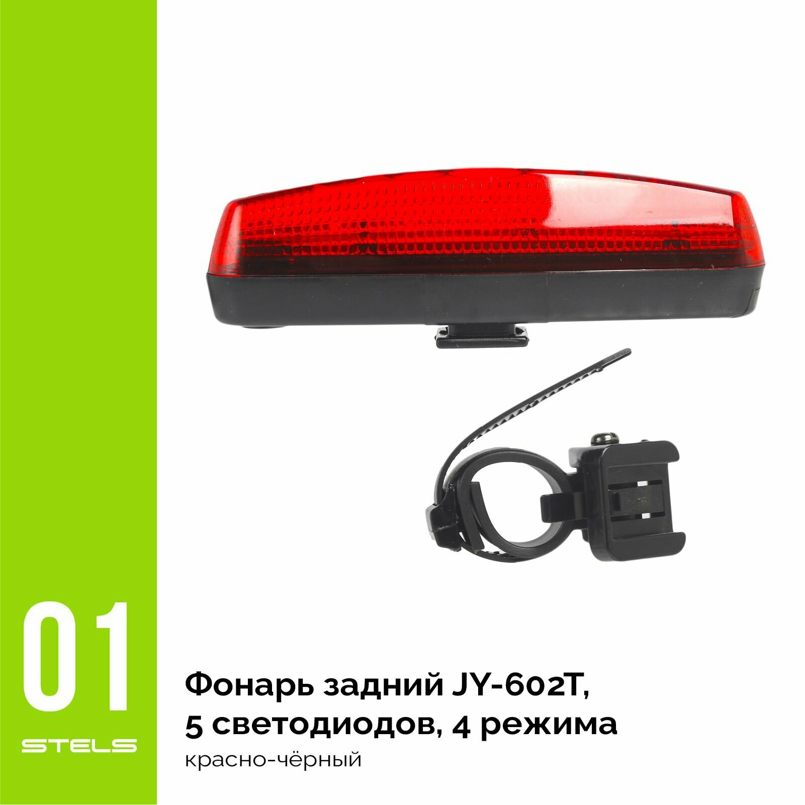 Велофонарь Задний фонарь для велосипеда STELS JY-602T, 5 светодиодов, 4 режима, красно-чёрный NEW