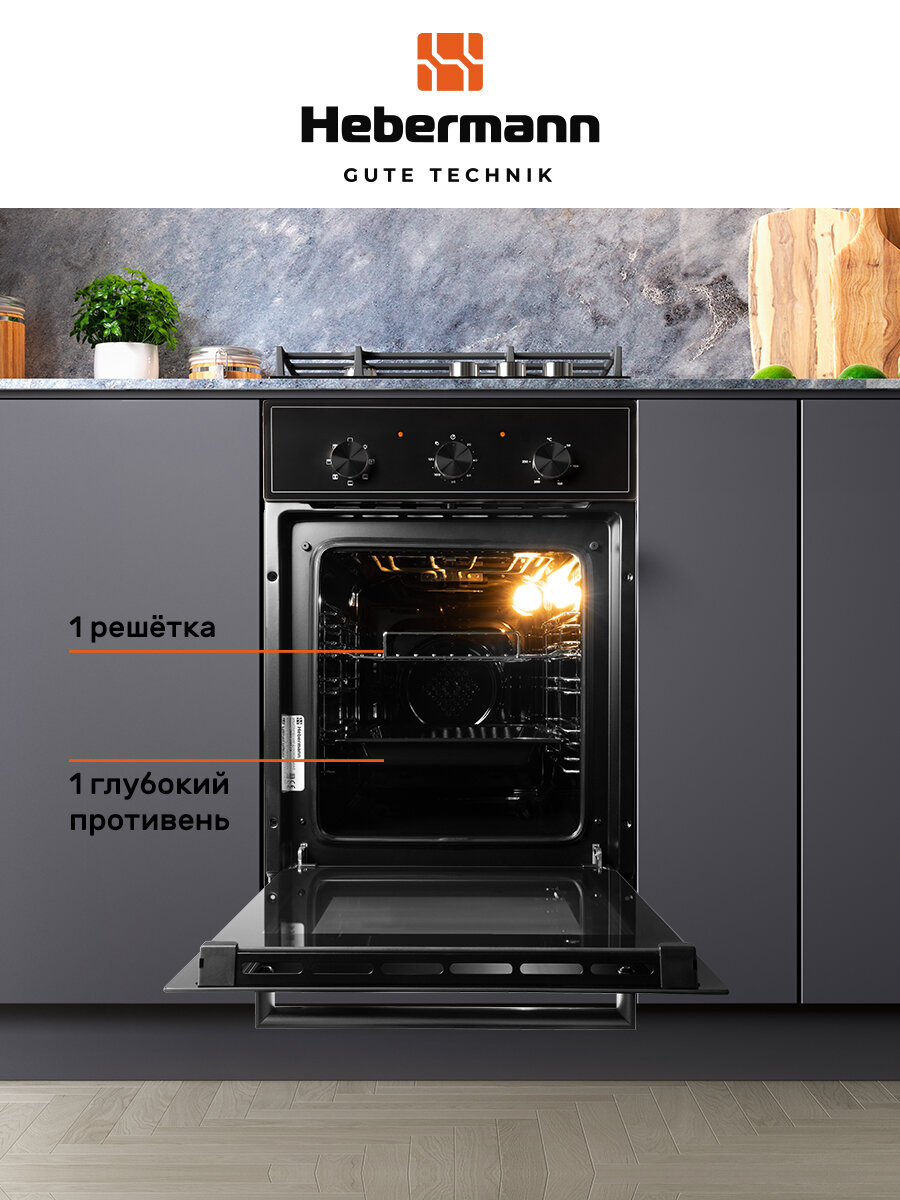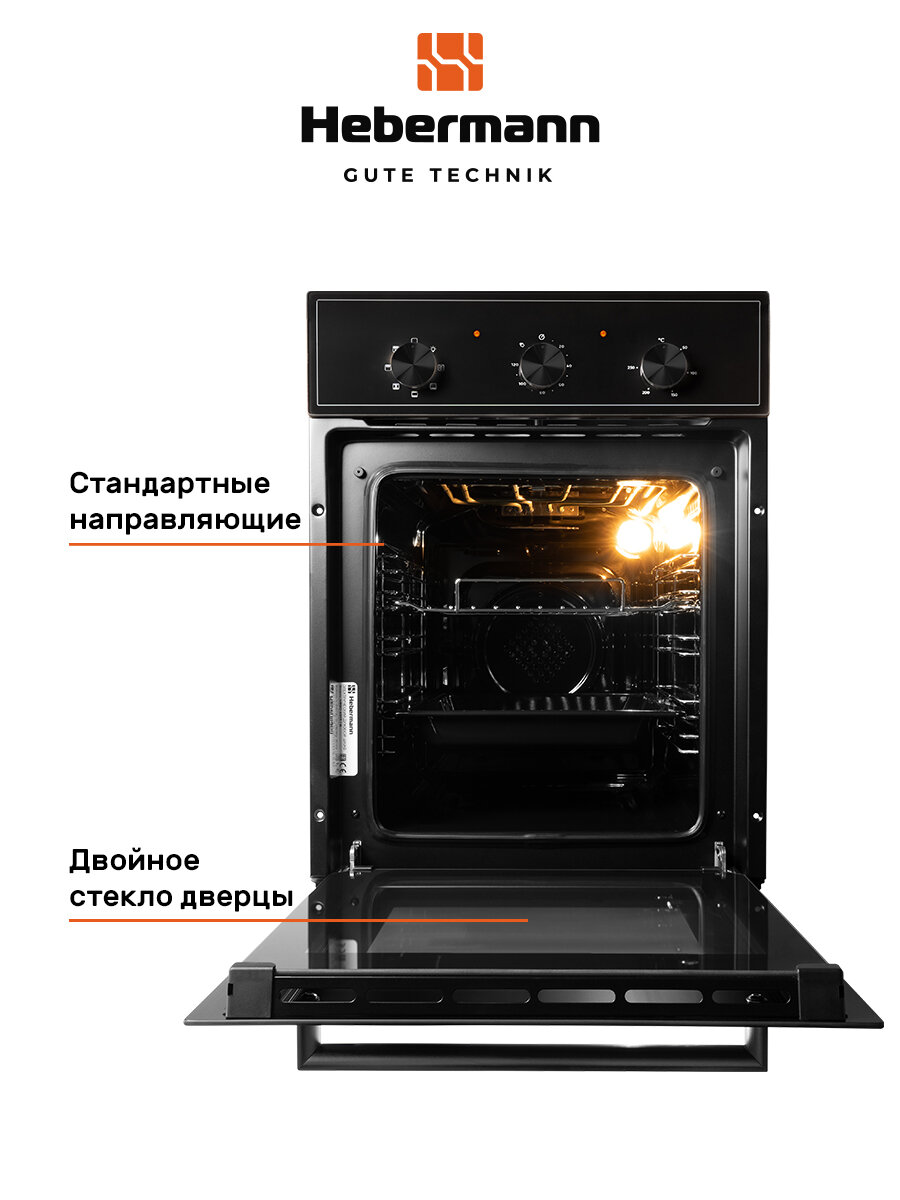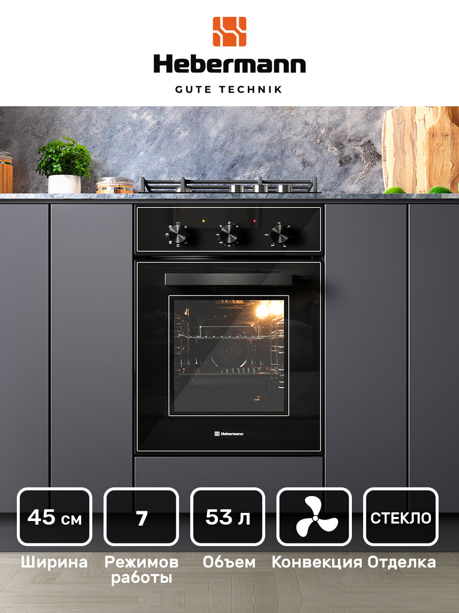 Духовой шкаф HBBO 4507.1 B, черный, Усиленный гриль + конвекция, Размораживание,1 решетка и 1 глубокий противень, двойное стекло у дверцы, 7 режимов работы, объем духовки 53 л, размеры шкафа 595х450х580 мм, отделка фасада-стекло. 26 721 ₽ Подробнее