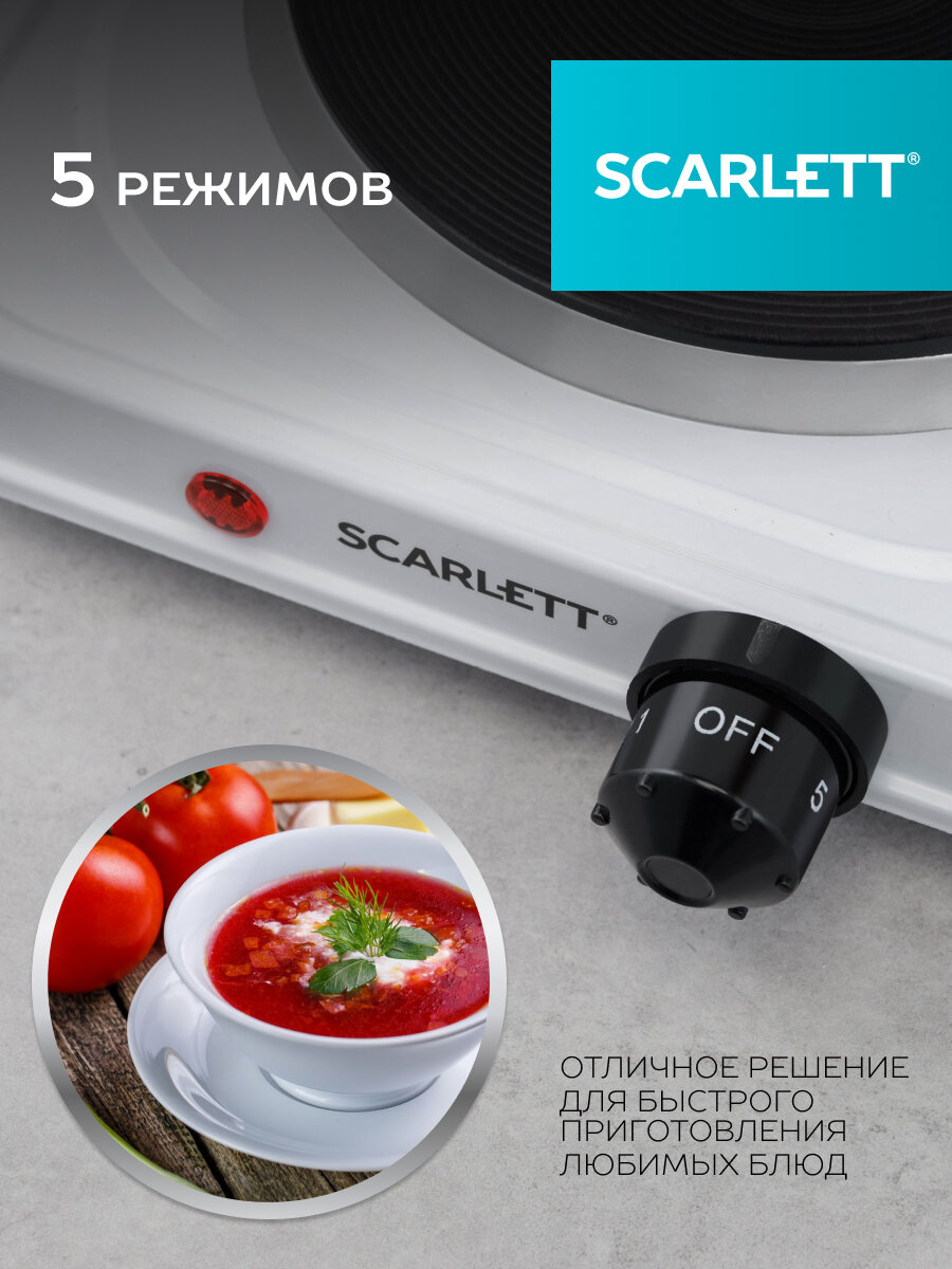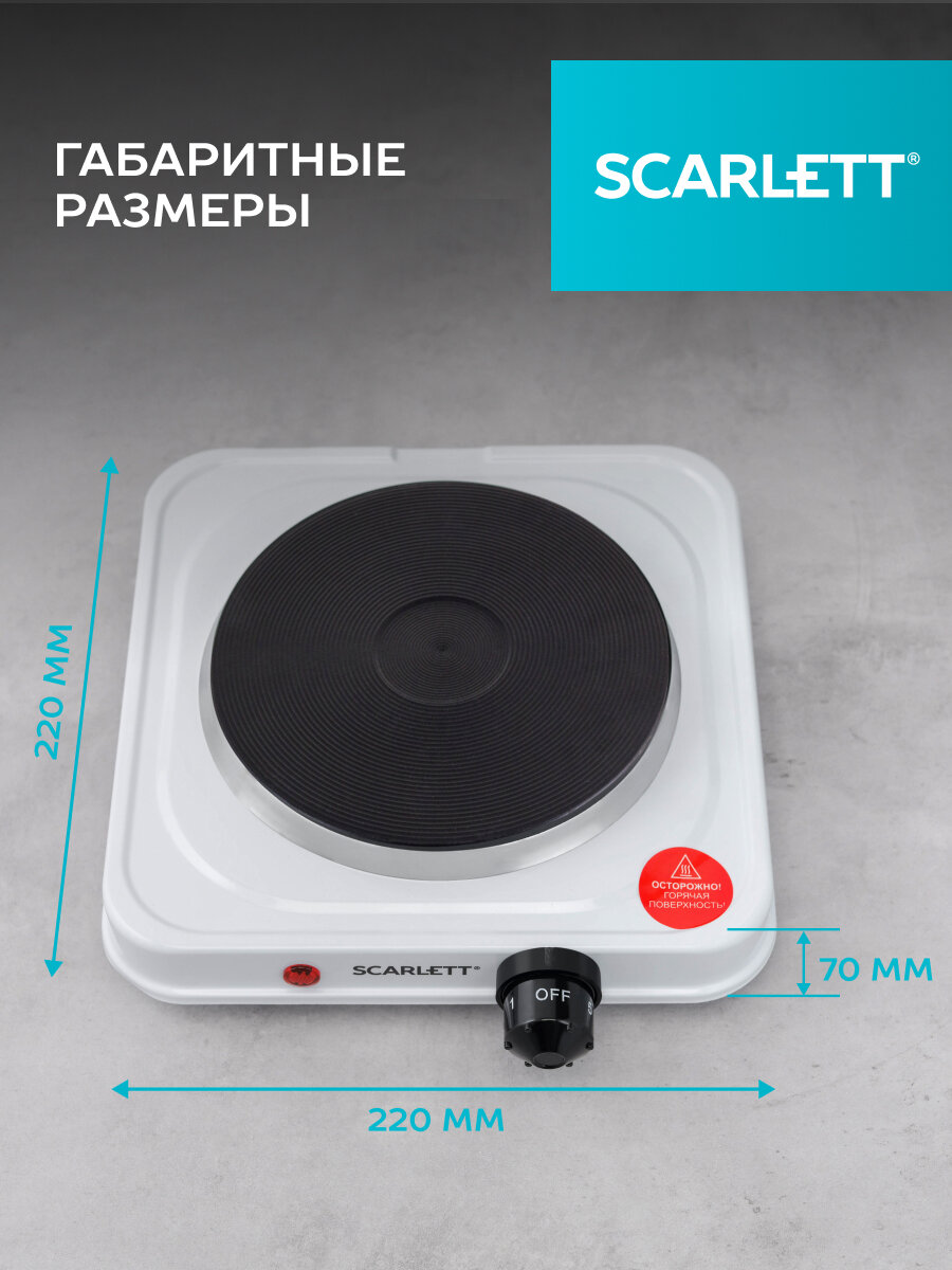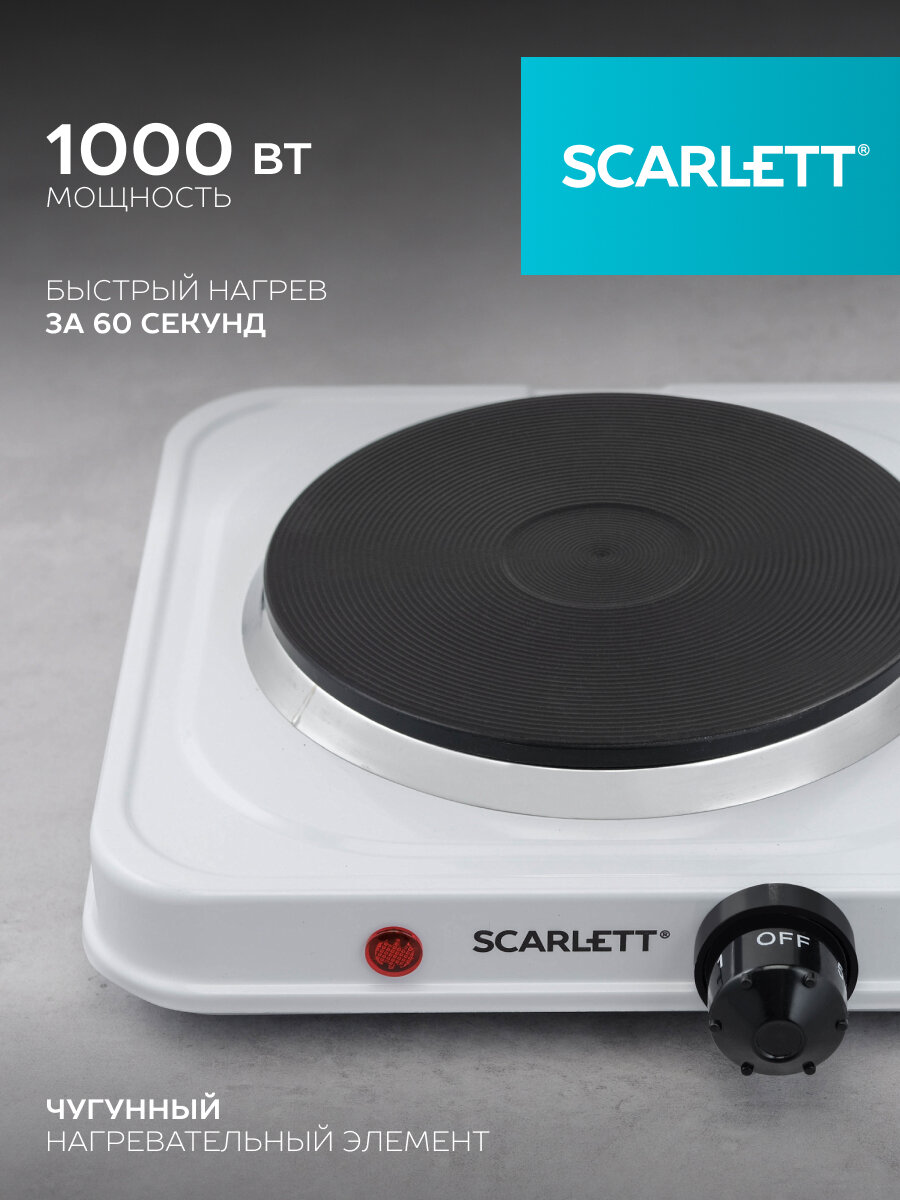 Плиты Плитка эл. Scarlett SC-HP700S41 (белый) 1000 Вт, размер конфорки 15.5 см, 5 режимов