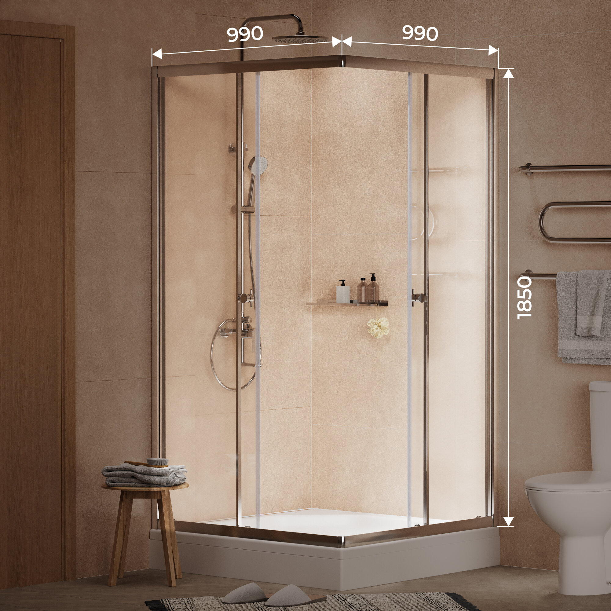 Душевое ограждение Homsly, хром, квадратное 90*90 см, коллекция Basic, 4H-010-CS90-BSC