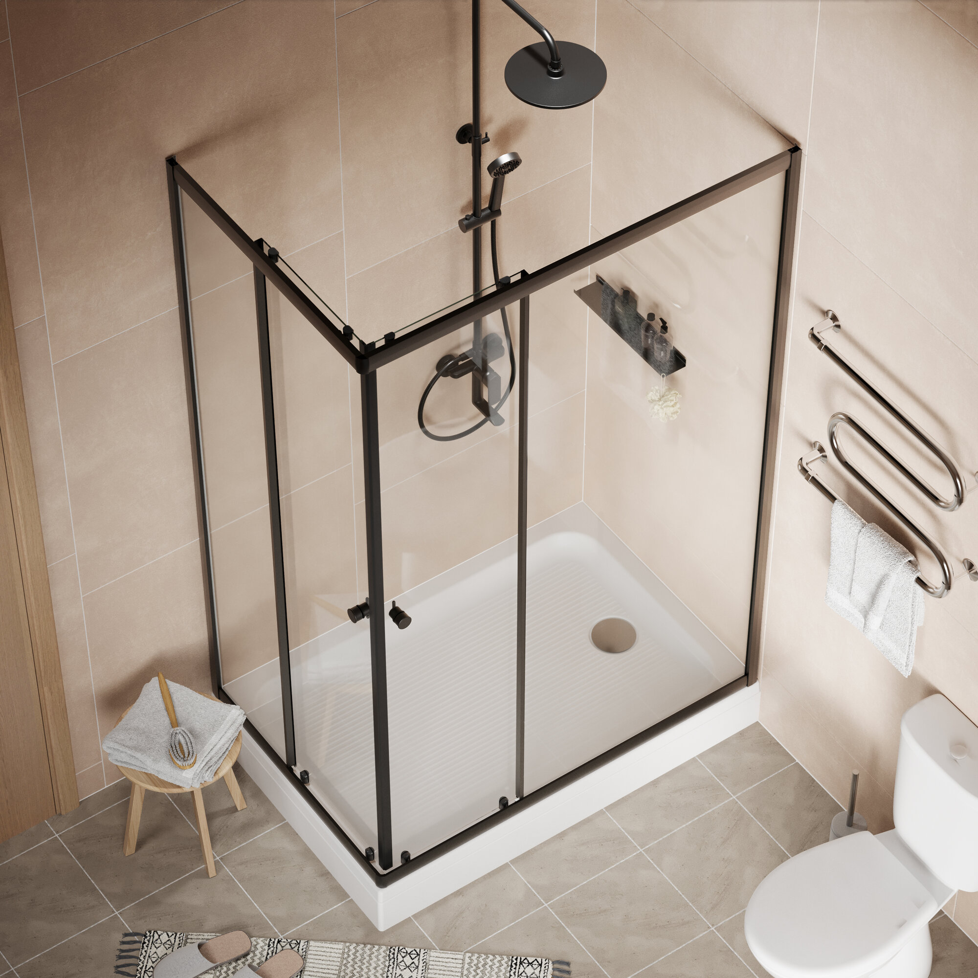 Душевые перегородки и стенки Душевое ограждение Homsly, черное, прямоугольное 120*80 см, коллекция Basic, 4H-015-BS12-BSC