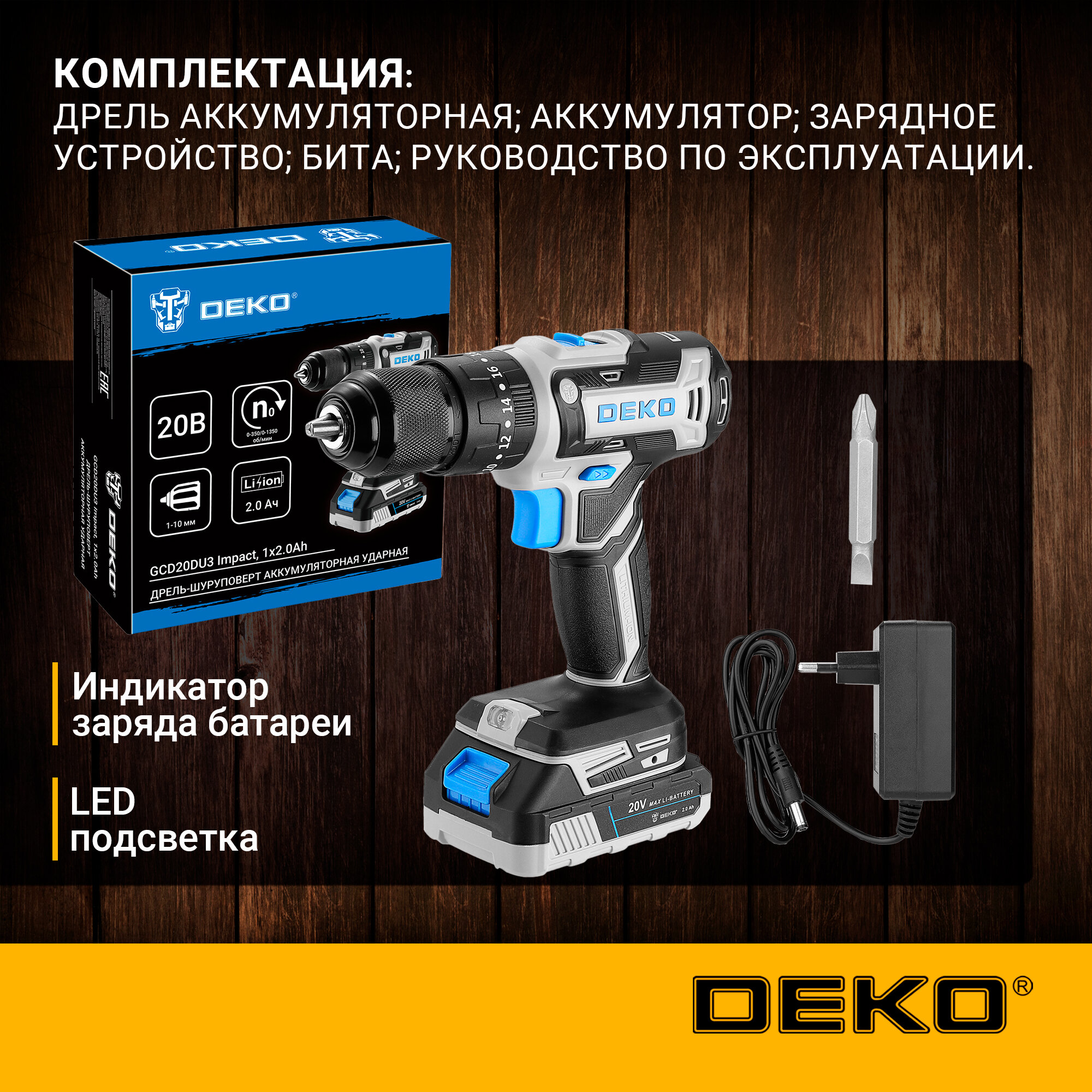 Аккумуляторная дрель-шуруповерт DEKO GCD20DU3