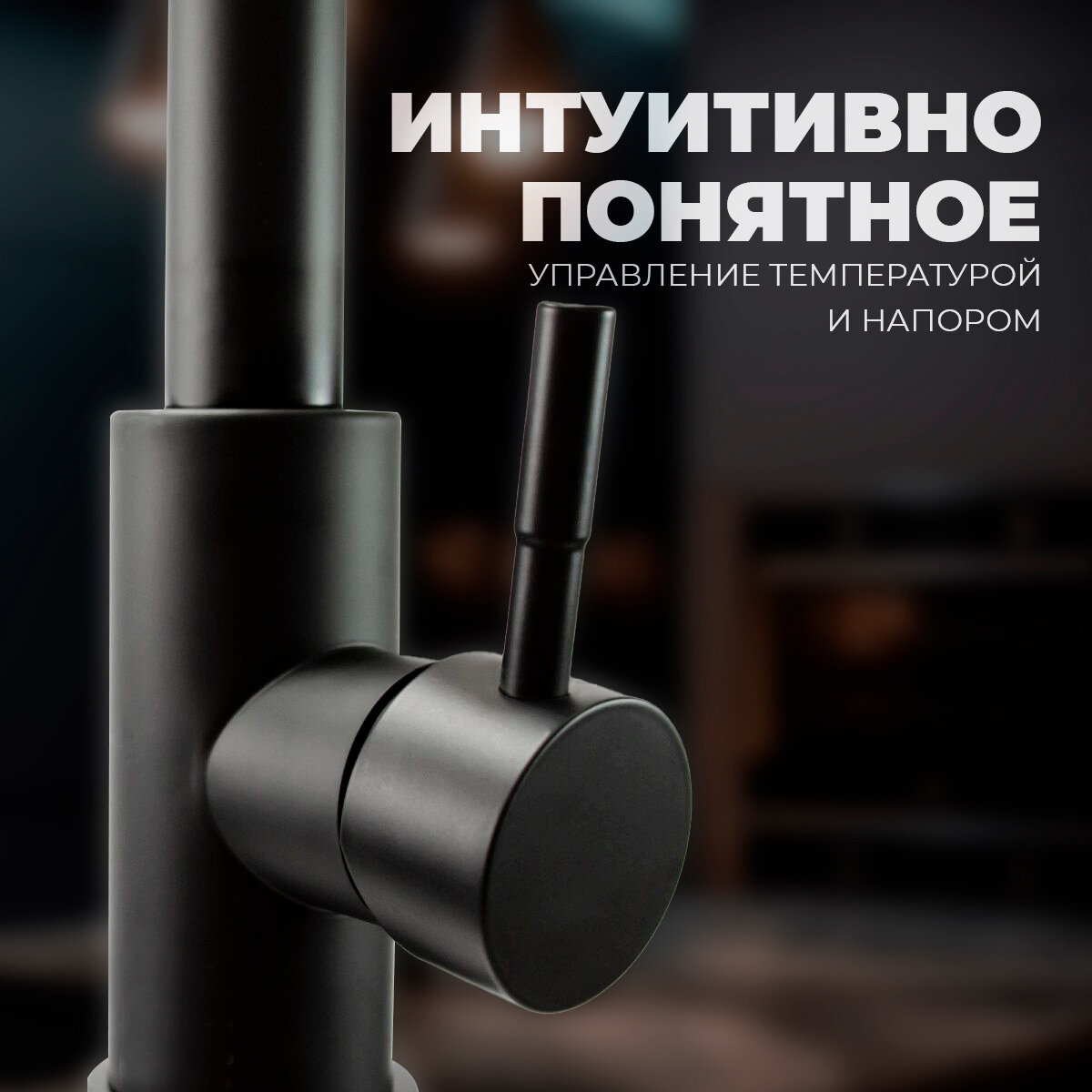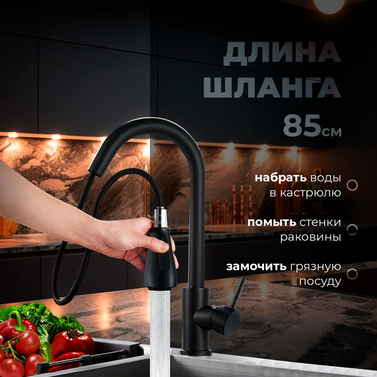 Смеситель для кухни (черный) Hans&Helma с выдвижной лейкой для раковины однорычажный, гибкий излив, кран сантехника умывальник 2 140 ₽ Подробнее