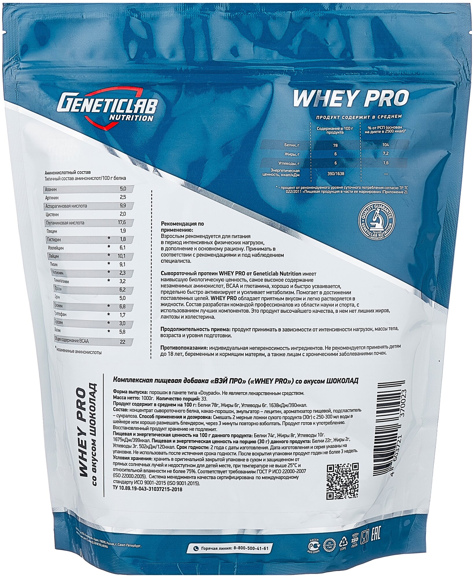 Протеины Geneticlab Whey Pro 100% Whey 1000 г (шоколад)