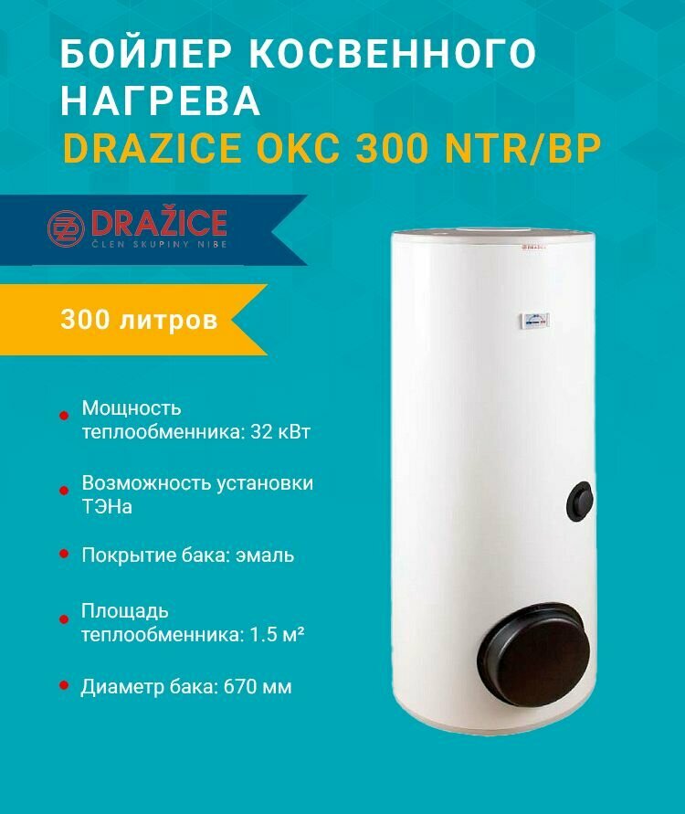 Водонагреватель Бойлер косвенного нагрева Drazice OKC 300 NTR/BP 121070101 (296 литров) (теплообменник 35 кВт.) с возможностью подключения ТЭНа