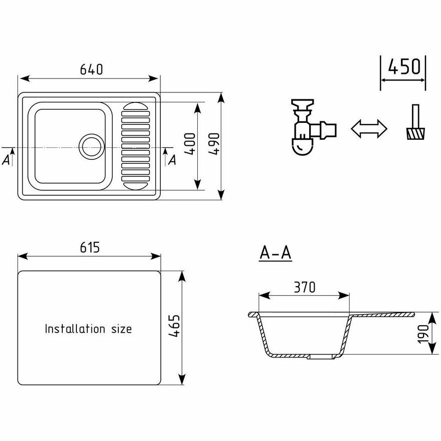 Мойка Ulgran, мрамор, U-202-308, (640*490*190 мм), черный, сифон и сливная арматура
