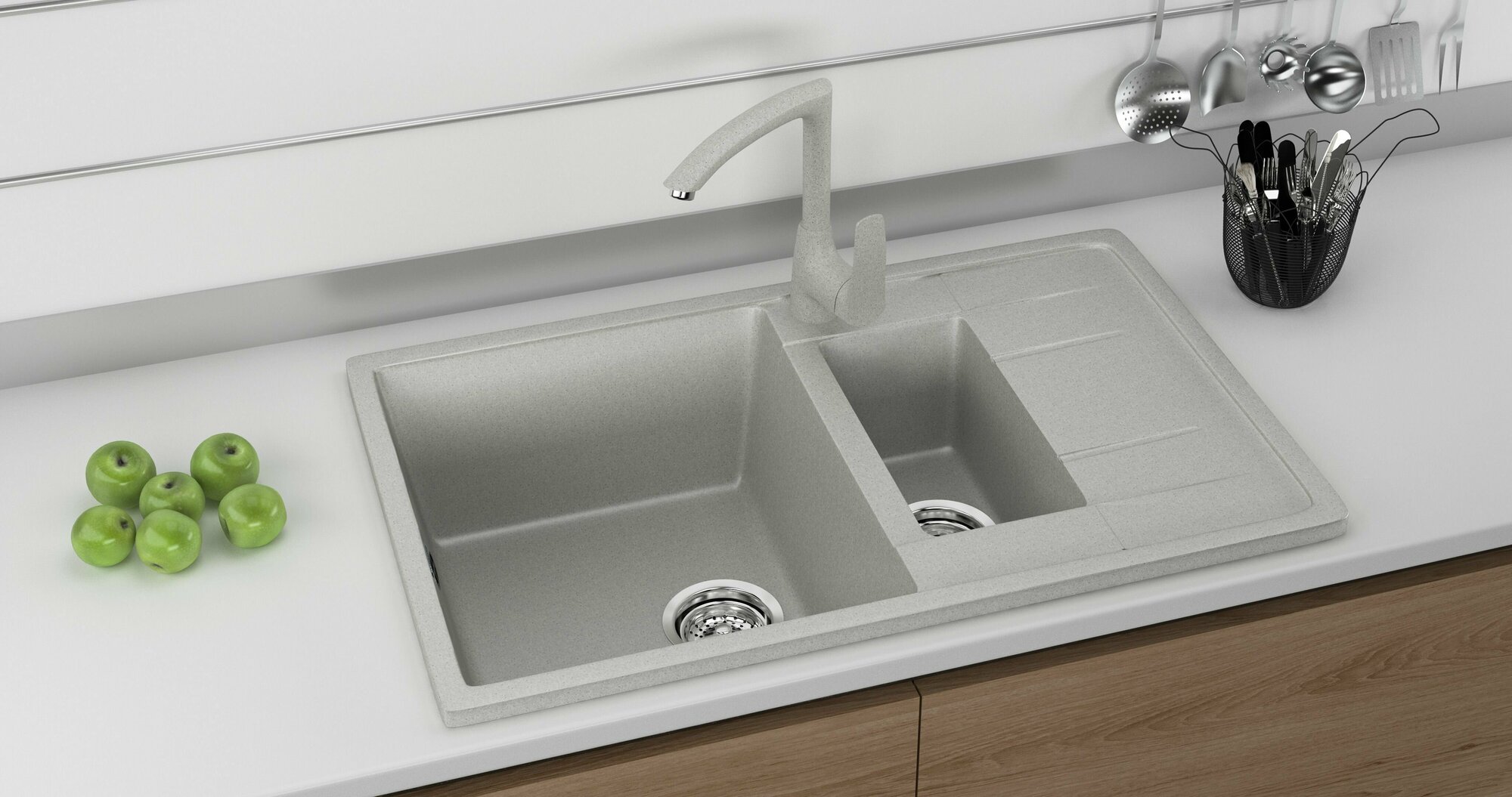 Мойка Ulgran, мрамор, U-205-310, (770*495*195 мм), серый, сифон и сливная арматура