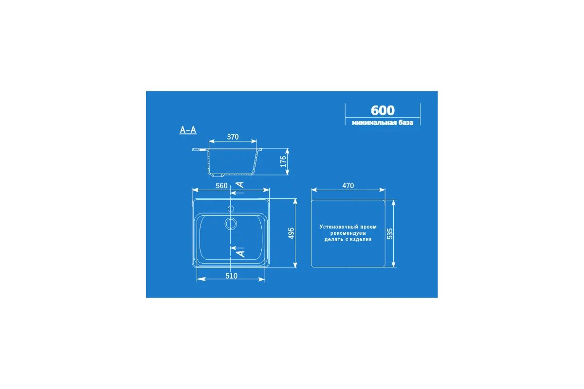 Врезная кухонная мойка 56 см, Ulgran U-104, матовое 308 черный