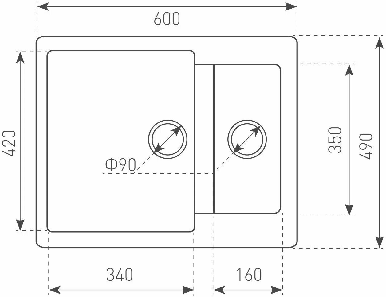 | Размеры доп. чаши (ДхШхГ) | 160x350x140 мм |