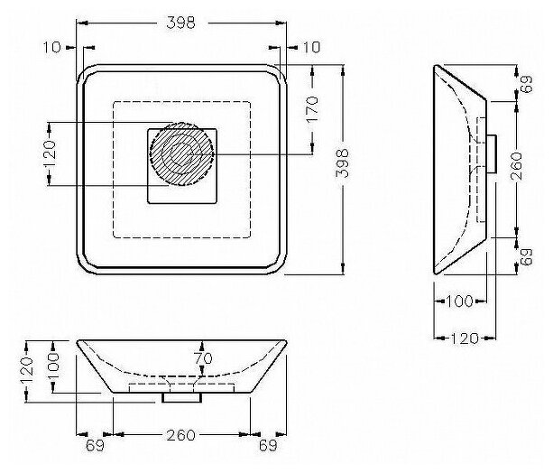 | Габариты (ШхГхВ) | 398х398x120 мм |