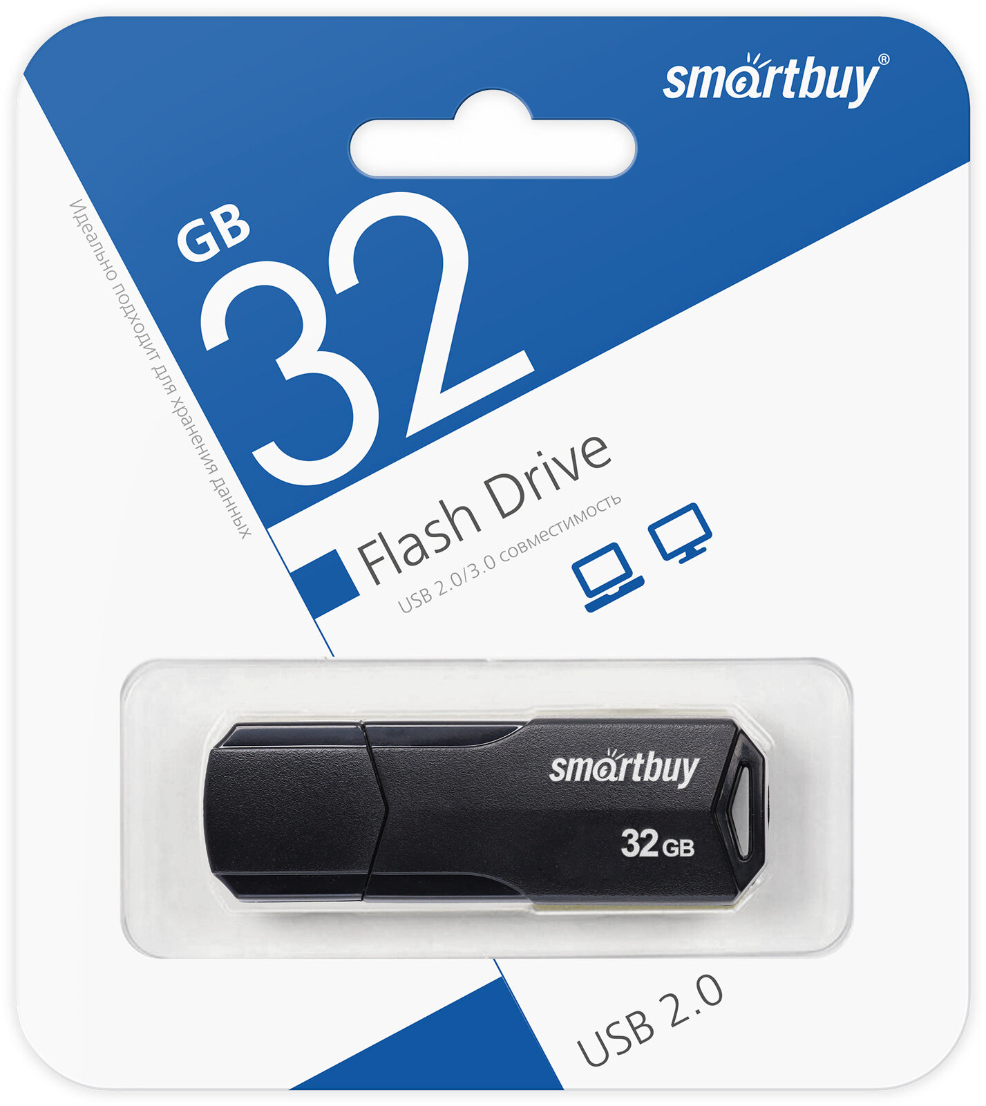 Накопитель USB 2.0 32Гб Smartbuy Clue (SB32GBCLU-K), черный