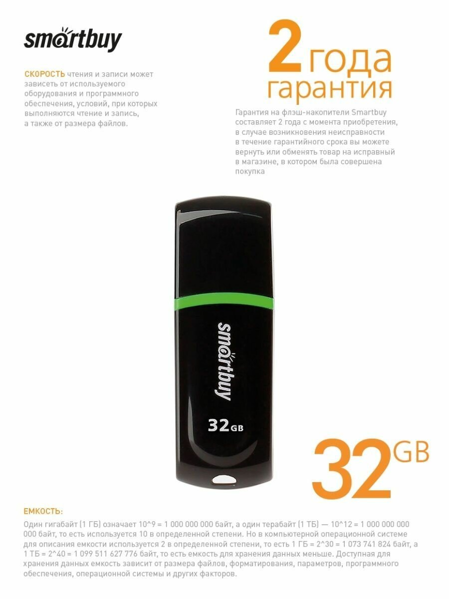 Флэш накопитель USB 32 Гб Smart Buy Paean, черный, 1 шт.