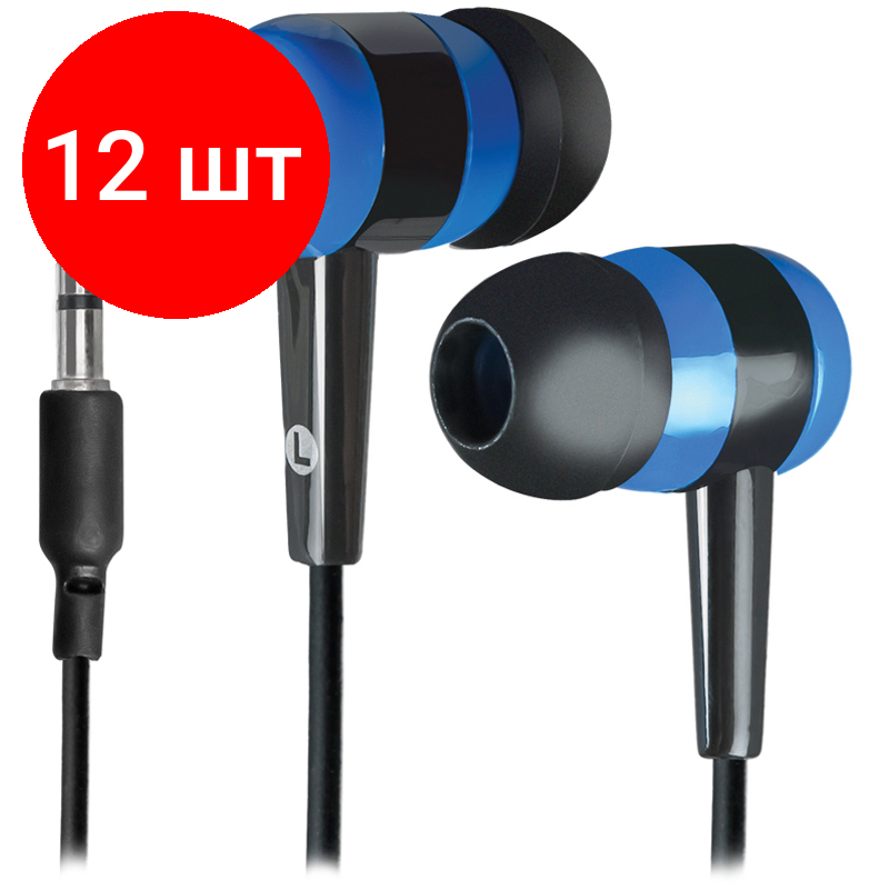 Наушники Комплект 12 шт, Наушники-вкладыши Defender "Basic" 616, 1.1м, черный, синий
