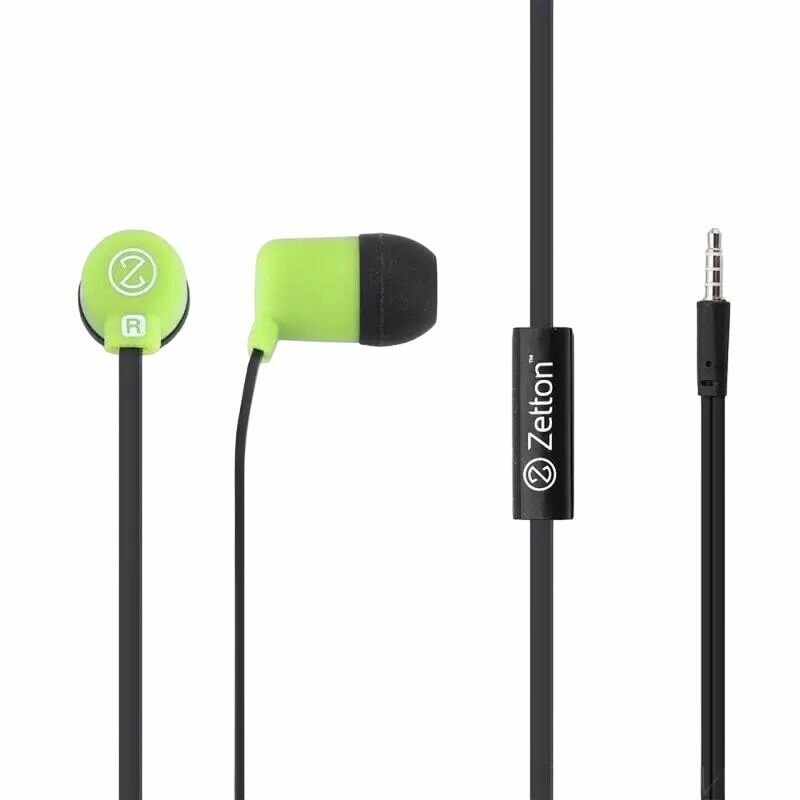 Наушники Гарнитура вставная Zetton Barrel стерео черная с зеленым (ZTLSHSBARBG)