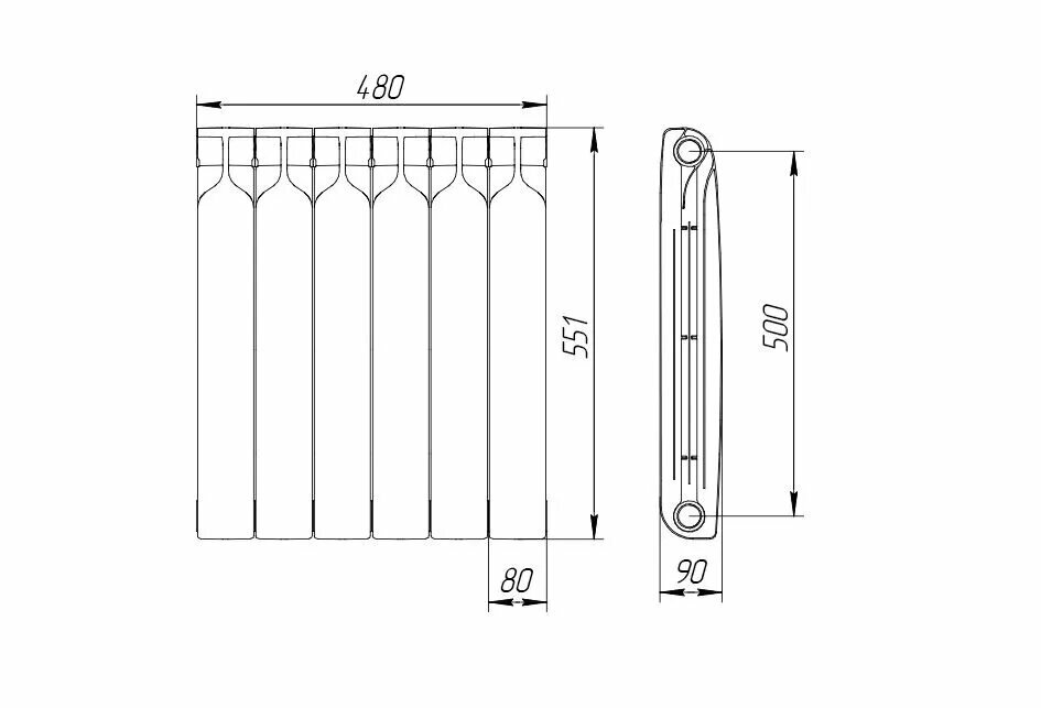 Радиатор биметалл 500/90 7 секций Теплоприбор BR1-500/07