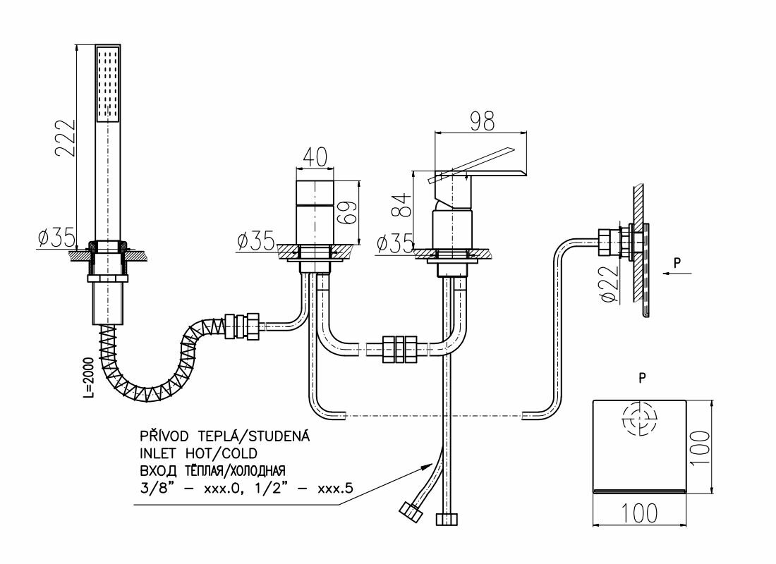 Смеситель Смеситель RAV Slezak Loira, на 4 отверстия, наполнение воды через слив-перелив, хром LR563.5P