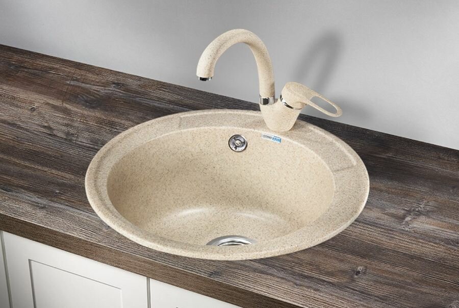 Мойка для кухни Granula Standard 480х480х190 мм врезная круглая без крыла кварц бежевая