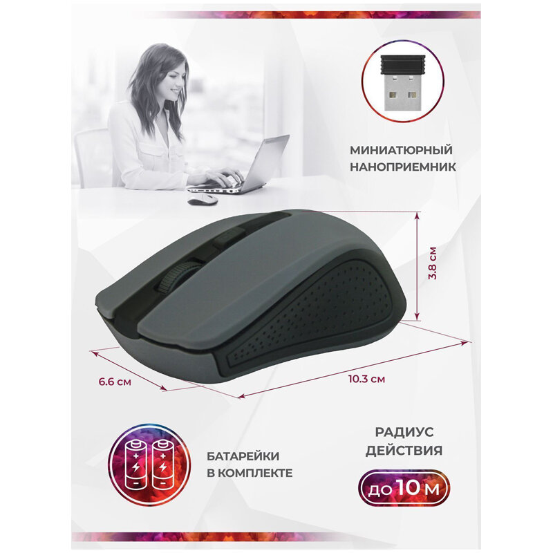 Беспроводная мышь Defender Acura MM-935, 4 кнопки, 800-1600 dpi, питание 2*ААА. радиус действия 10 м, серая 335 ₽ Подробнее