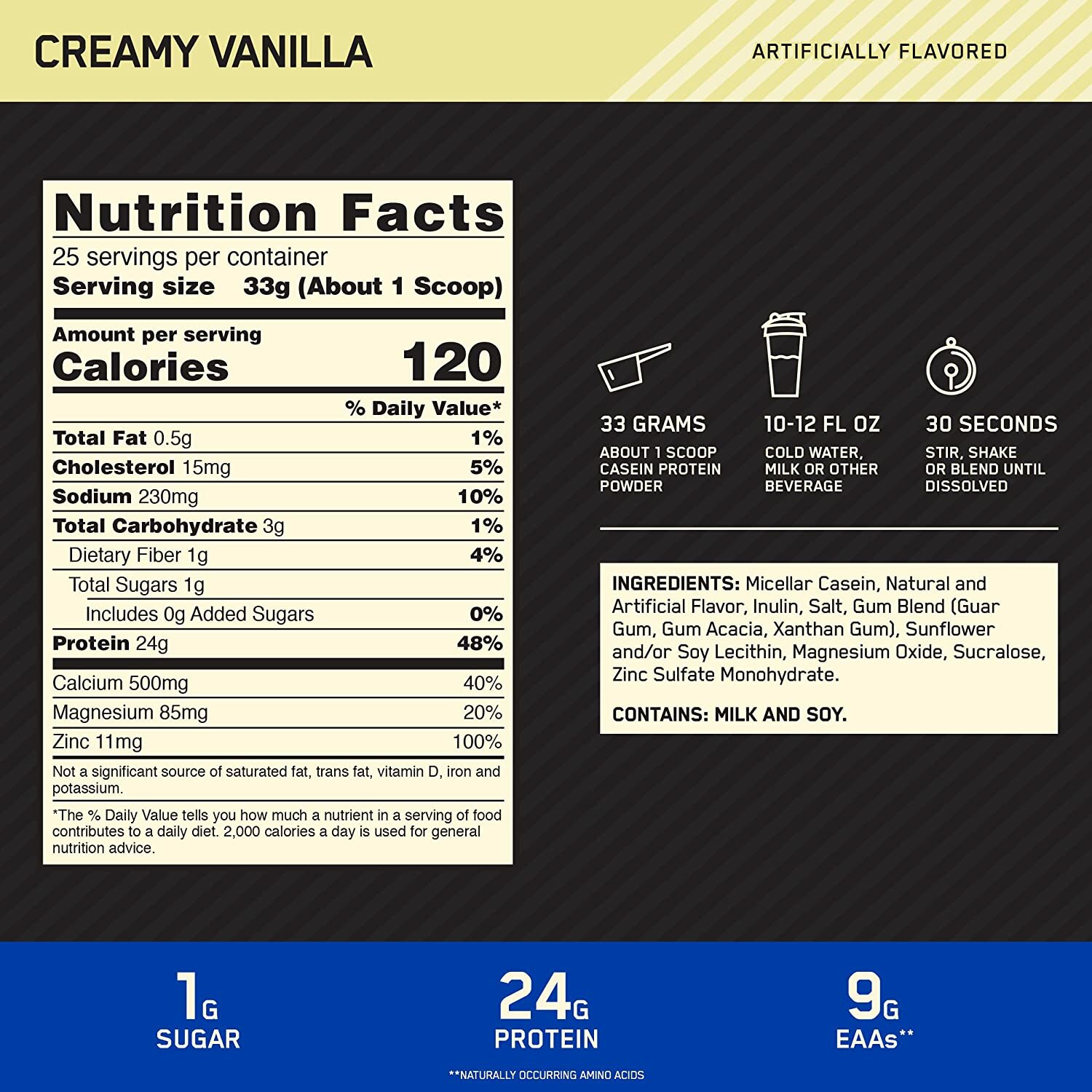 Протеин для спорсменов Optimum Nutrition- Gold Standard 100% Casein 2 lb Creamy Vanilla