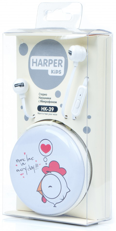 Наушники HARPER KIDS HK-39 проводные, вакуумные, белый