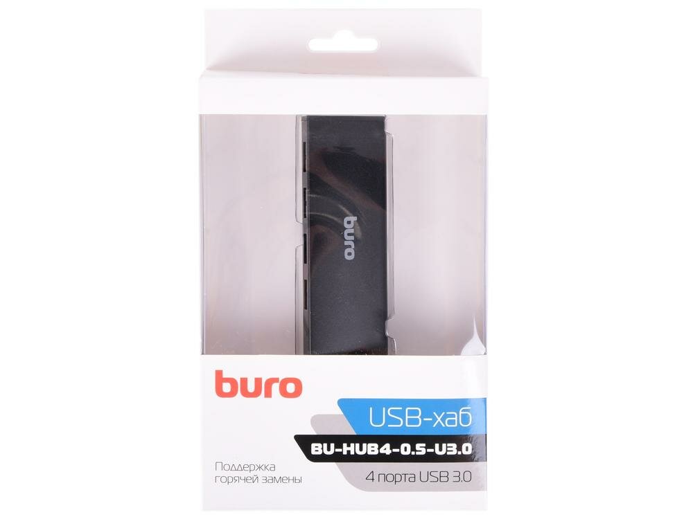 Картридеры и USB-хабы Концентратор USB 3.0 BURO BU-HUB4-0.5-U3.0 4 х USB 3.0 черный