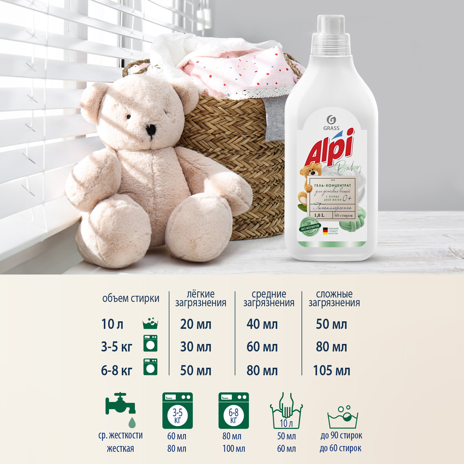 Гель для стирки Grass ALPI Baby Gel для детских вещей и деликатной стирки, концентрат, 1.8л 720 ₽ Подробнее