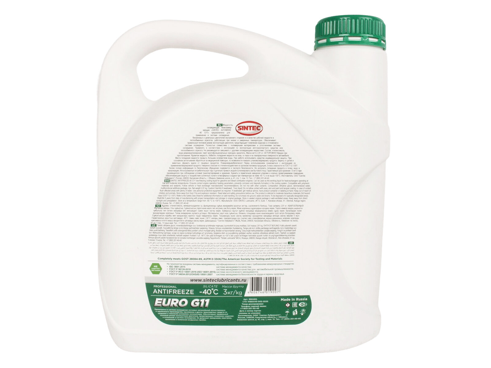 Антифриз SINTEC EURO G11 (-40) 3 л, 1 уп.