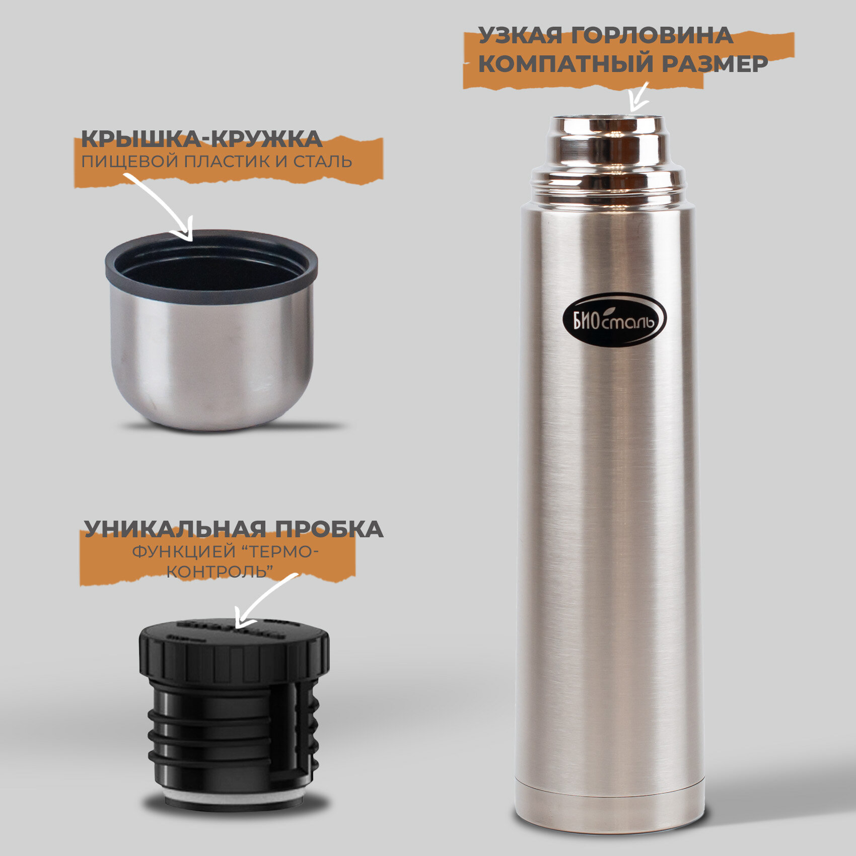 Термос Биосталь из нержавеющей стали, 0,75 литра