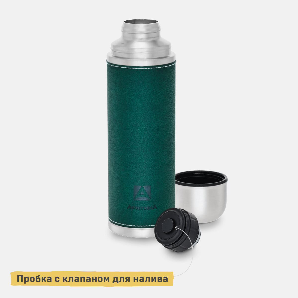Термос Арктика 108-1000-GN с узким горлом в кожаной оплетке зеленый [1 л. / ]