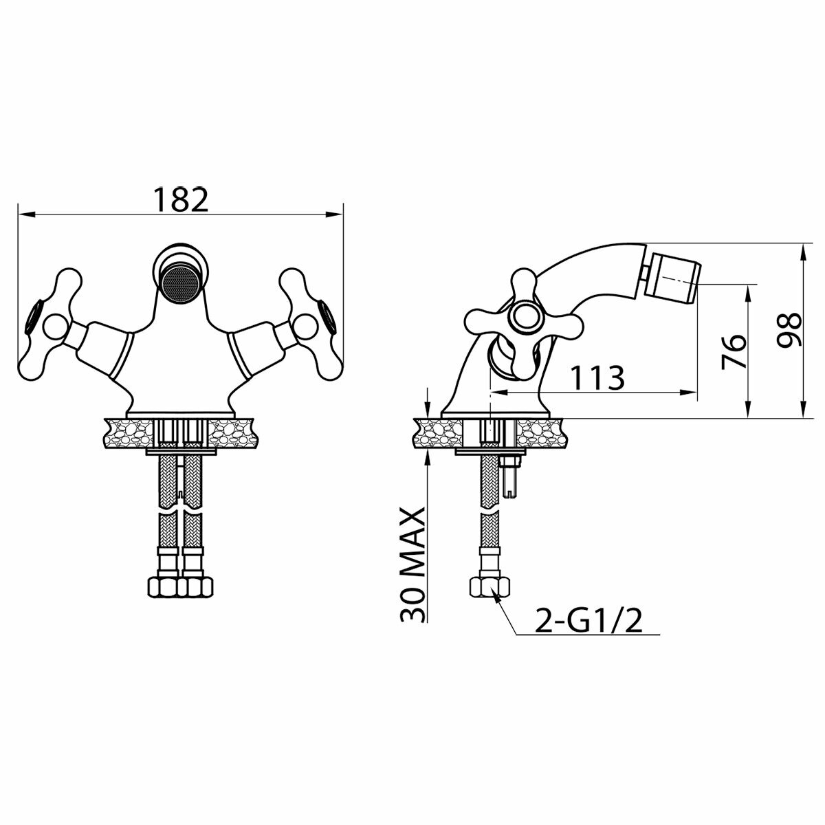 Смеситель Смеситель универсальный для раковины и биде латунный двухвентильный с гибкой подводкой ELGHANSA 4902754, хром
