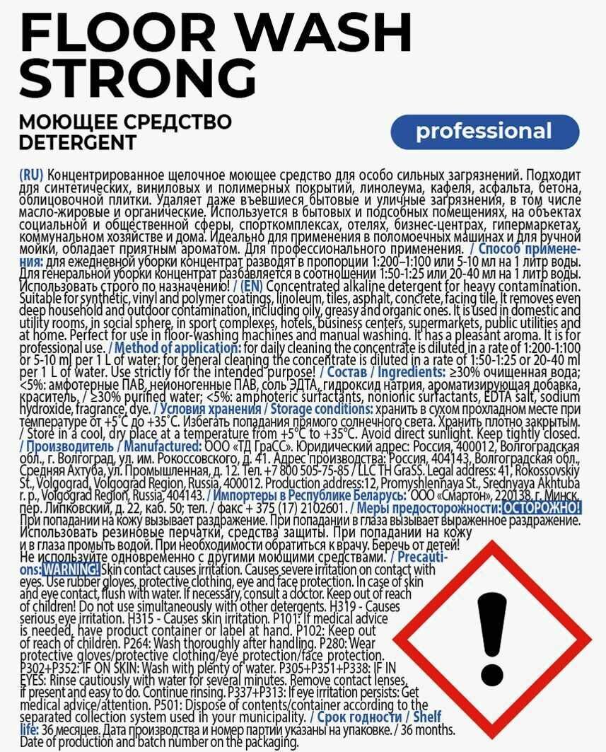 Средство для мытья пола GRASS Floor Wash Strong Professional (канистра 5 л), универсальное, моющее средство для полов