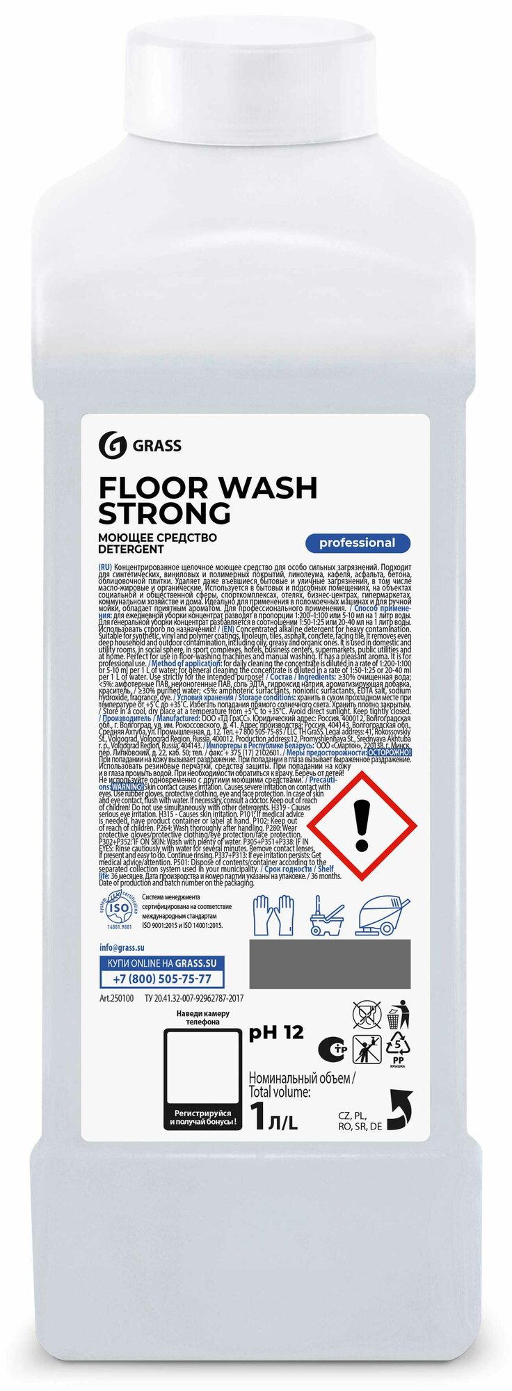 Средство Для Мытья Пола Grass Floor Wash Strong (1Л) Щелочное GraSS арт. 250100