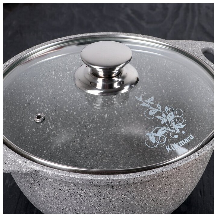 Кастрюли Кастрюля KUKMARA, 2 л, стеклянная крышка, антипригарное покрытие, цвет серый мрамор