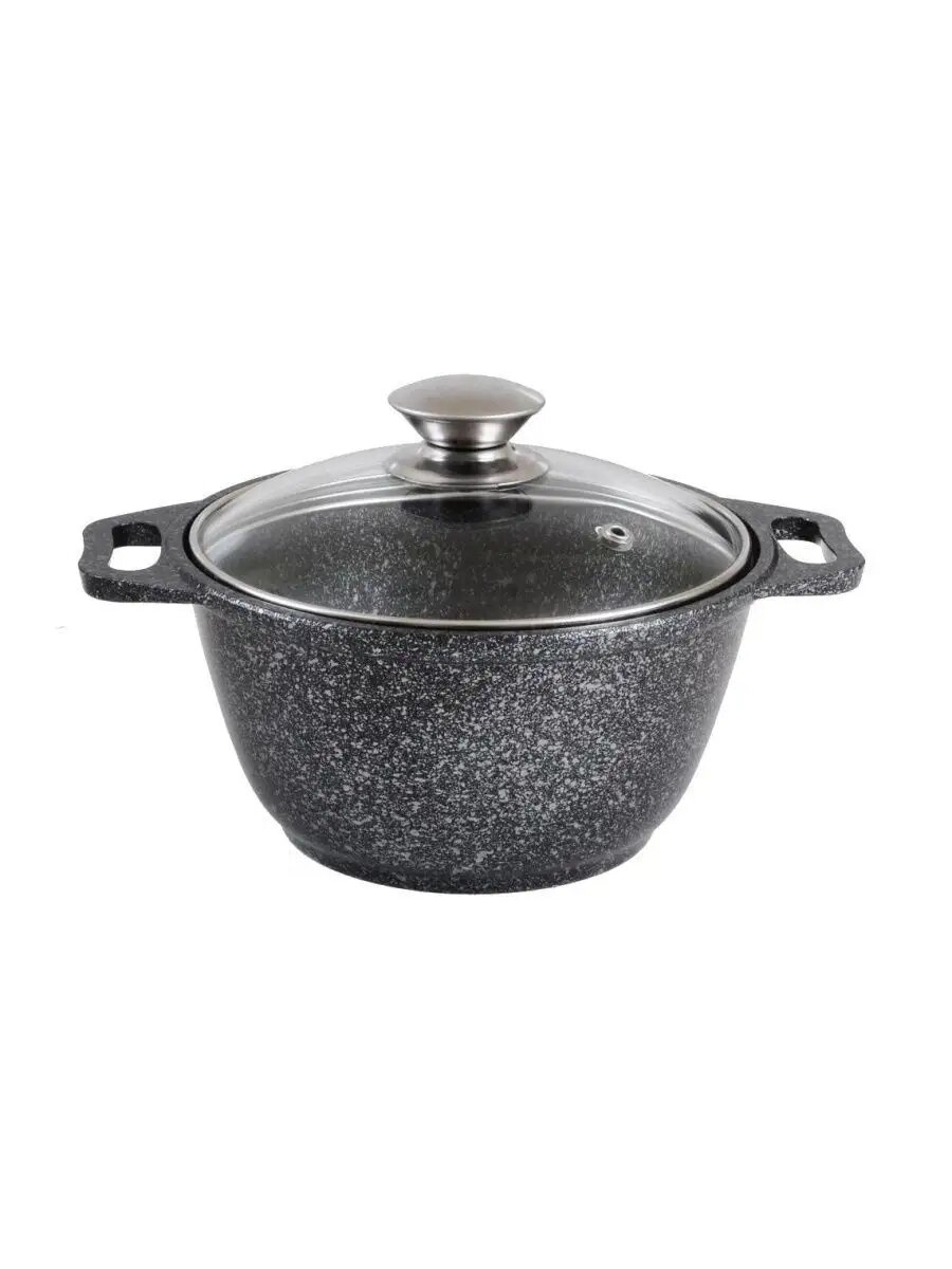 Кастрюля 1л «Мраморная» со стеклянной крышкой, литой алюминий темный мрамор КМ-кмт12а