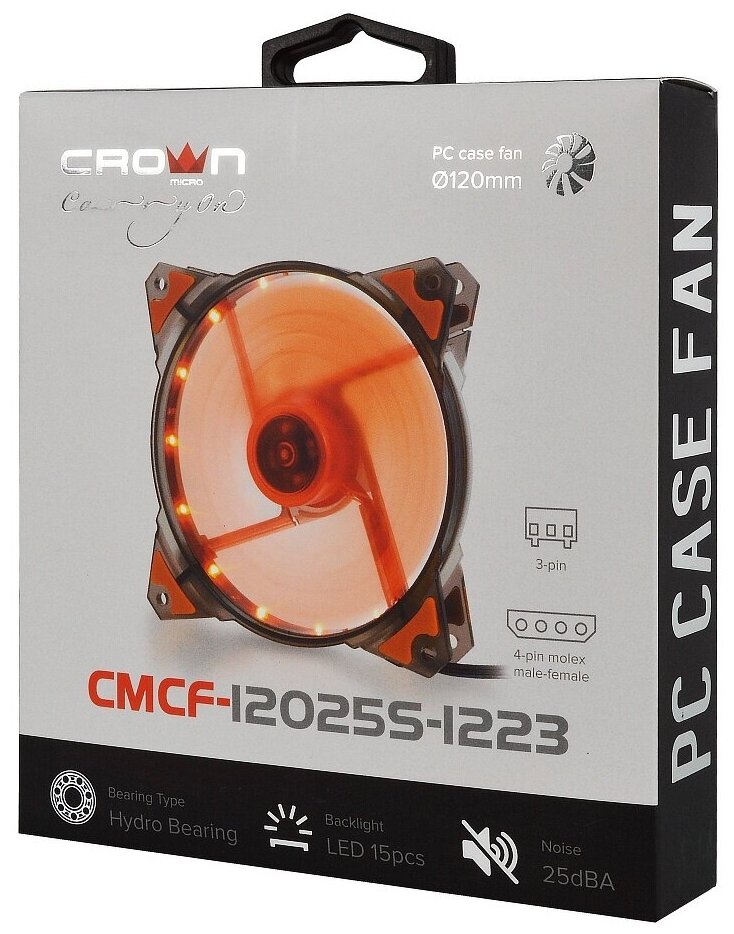 Вентилятор CROWN 120*120*25 1500об/мин 20дБ 16LED 3pin+MOLEX CMCF-12025S-1223, оранжевый