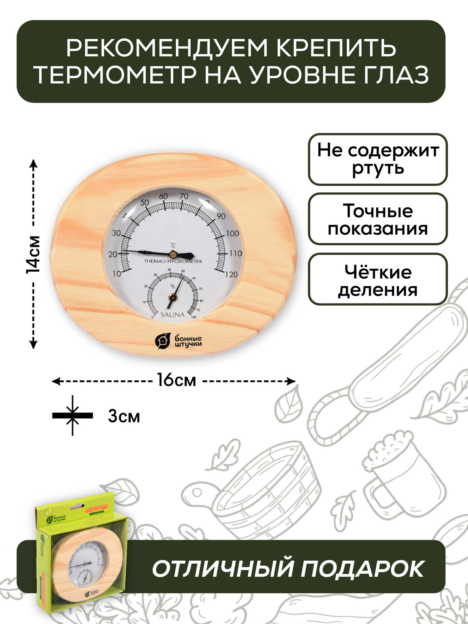 Термометр / барометр Термометр с гигрометром для бани и сауны Банная станция овальный в деревянном корпусе