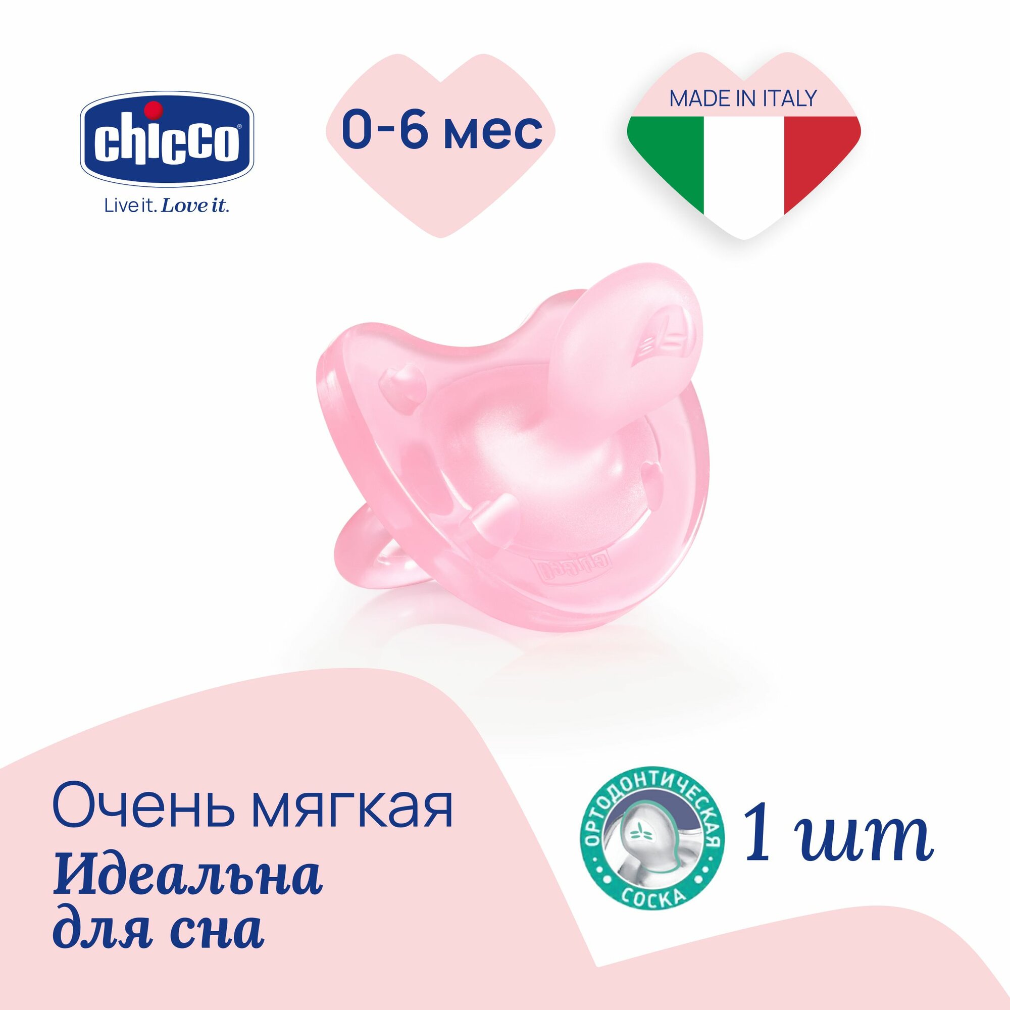 Соски и пустышки Соска пустышка Chicco Physio Soft анатомическая силиконовая для новорожденных, 0-6мес., розовая, чико подарок малышу