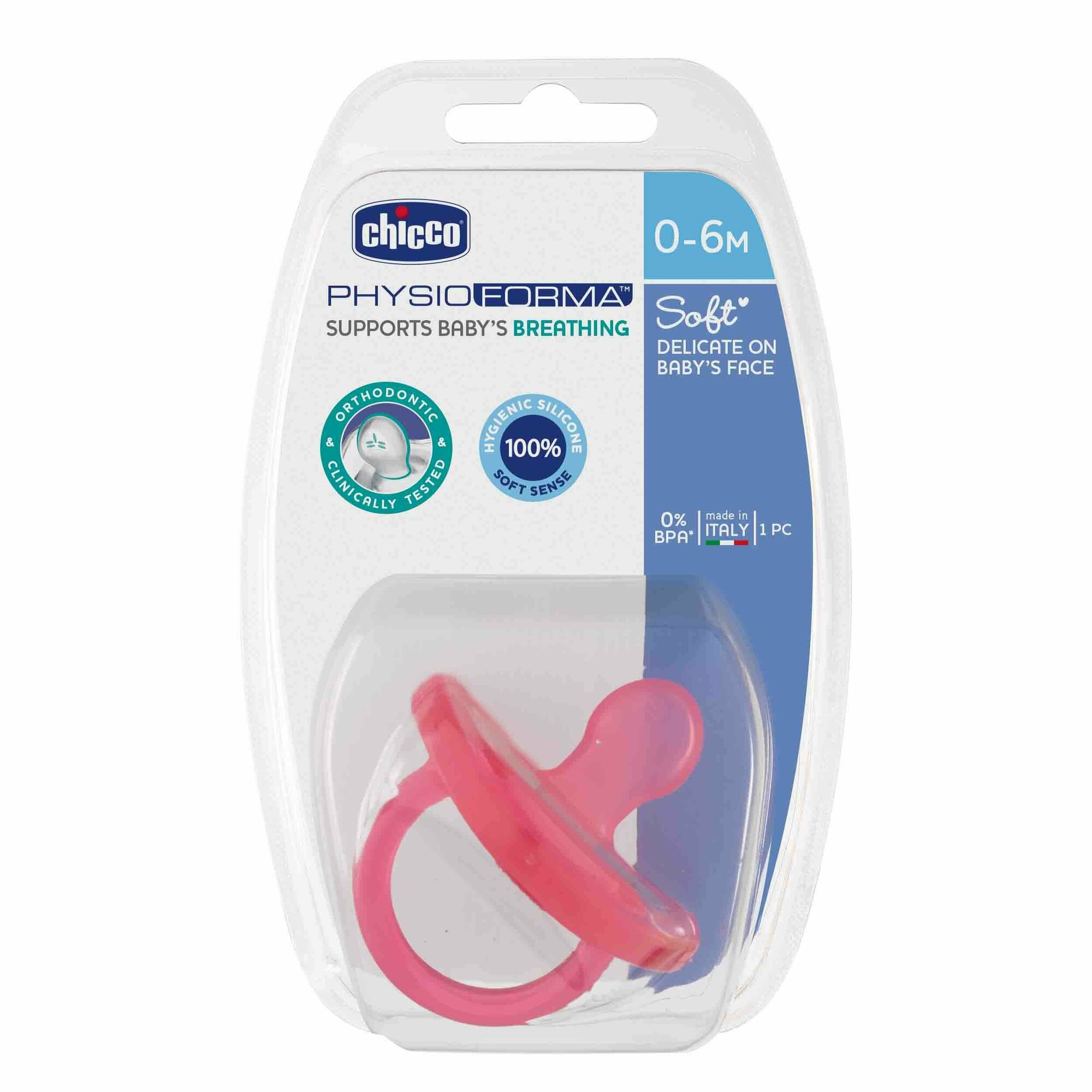 Пустышка Chicco Physio Soft анатомическая силиконовая, 0-6 мес., розовая/соска пустышка 0/для новорожденных/держатель для соски/силиконовая соска для малыша/ футляр для сосок чико