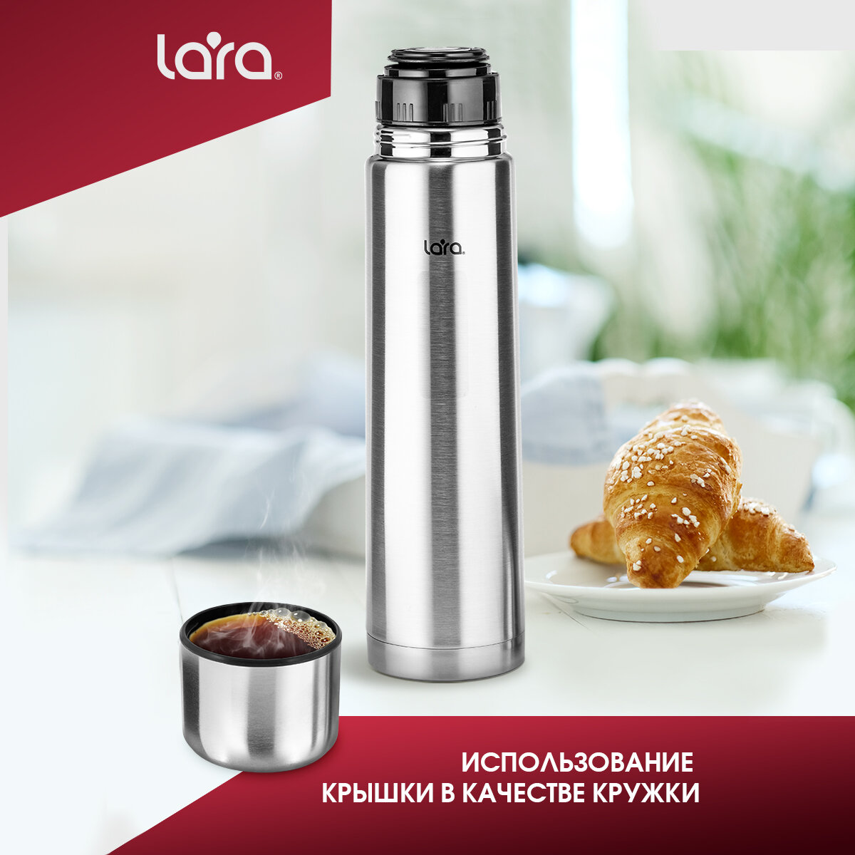 Термос LARA LR04-11 /1,00л, клапан, двойные стенки, крышка-чашка 910 ₽ Подробнее