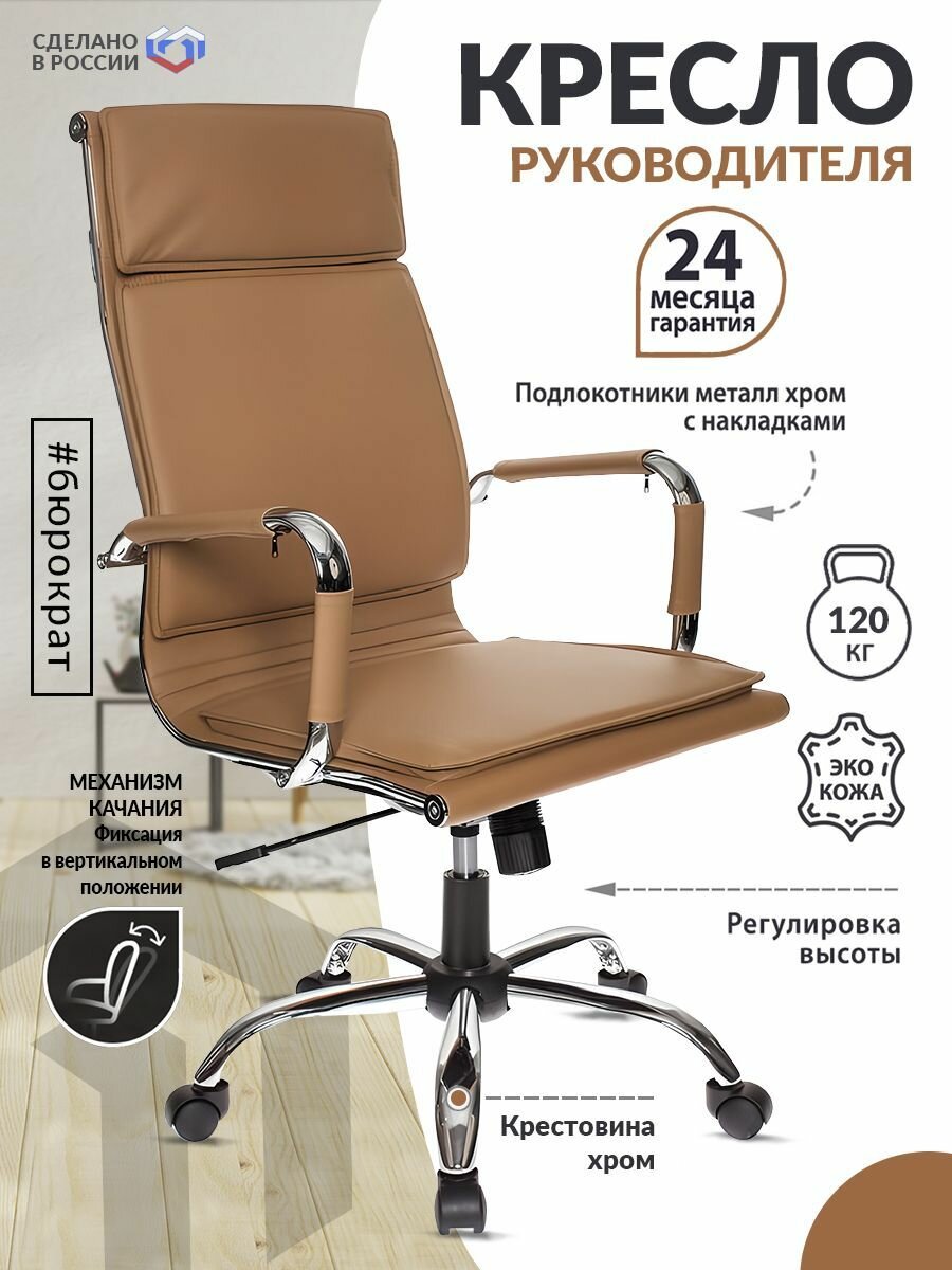 Компьютерное кресло Кресло руководителя Бюрократ CH-993/camel, крестовина хром, светло-коричневый, искуственная кожа (664065)