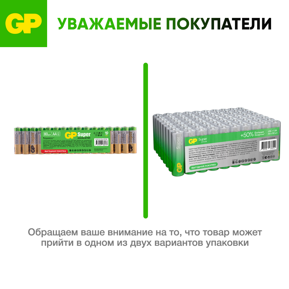 Батарейки GP Super, AA (LR6, 15А), алкалиновые, пальчиковые, комплект 60 шт., 15A-2CRVS60, в наборе 1 компл.