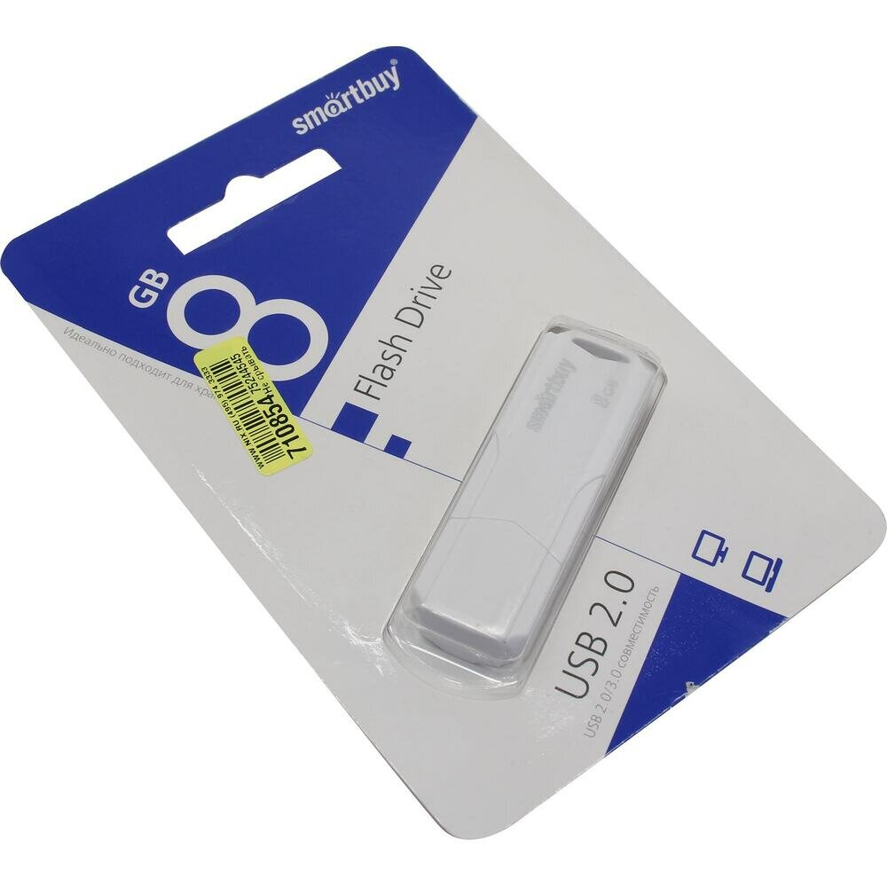 Флешка Smartbuy 8GBCLU-W, 8 Гб, Usb2.0, чт до 25 Мб/с, зап до 15 Мб/с, белая Smartbuy 10532364