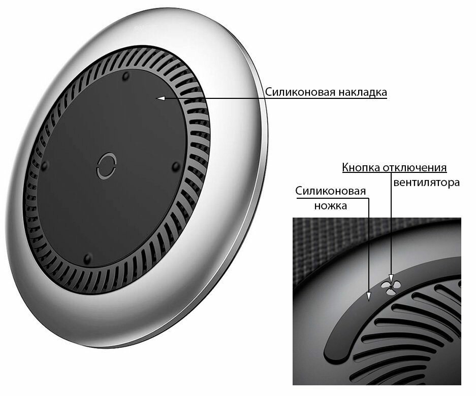 Лучшие цены. Беспроводная зарядка для телефона со встроенным вентилятором Baseus Whirlwind сделает процесс зарядки смартфона простым и удобным. Зарядное устройство выполнено в футуристическом дизайне и имеет компактные размеры: диаметр 10,5 см и высоту 2 см. Благодаря этому аксессуар не займет много места на рабочем столе и поместится даже в небольшую сумку. Поддержка технологии QI обеспечивает быструю зарядку мобильного устройства. Магазины в вашем городе.