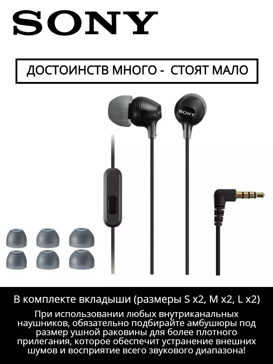 Наушники Sony MDR-EX15AP, проводные с микрофоном, черные, оригинал, РСТ 1 490 ₽ Подробнее