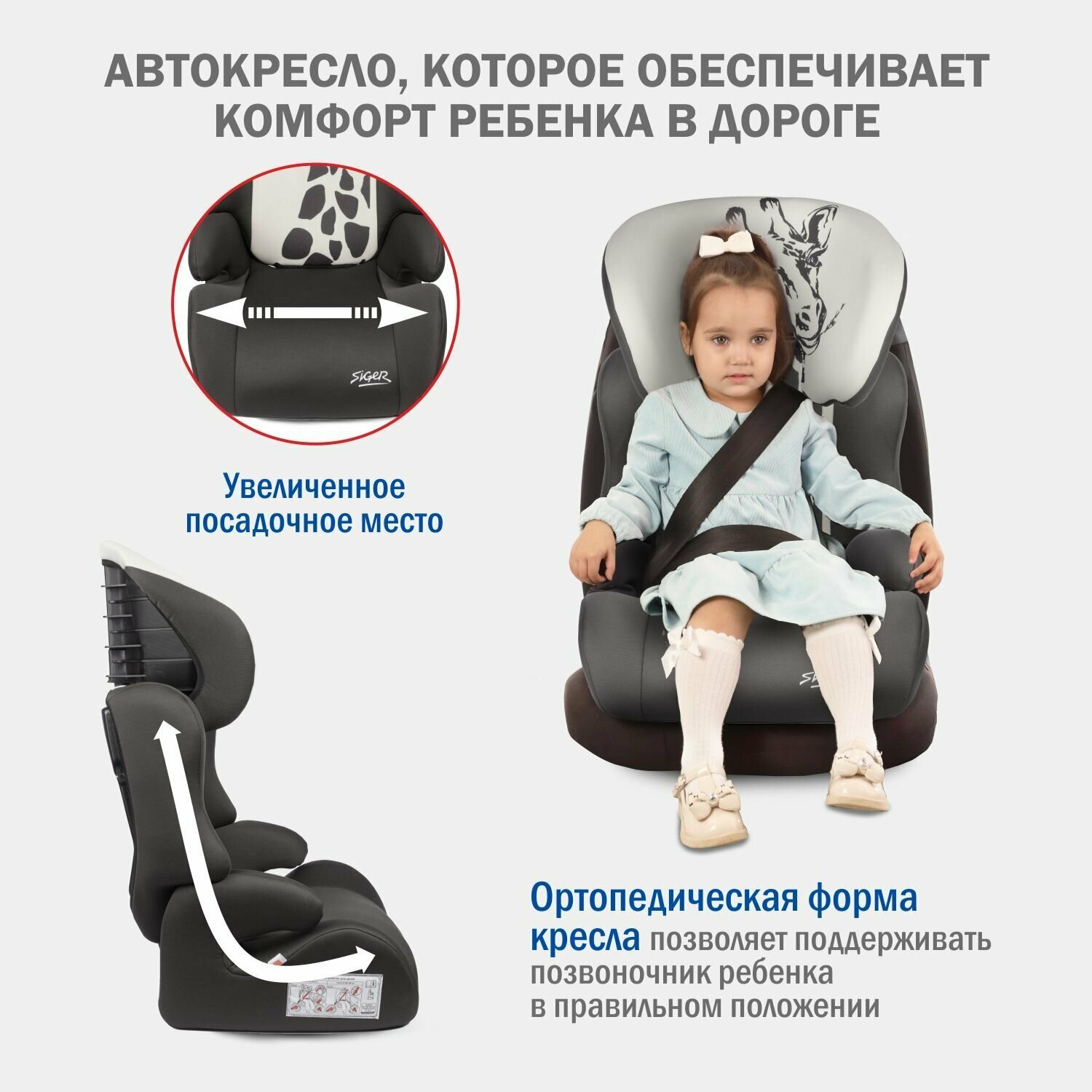 Удерживающее устройство для детей SIGER "Смарт", гр. II/III, 15-36 кг, 3-12 лет, серо-бежевый, жираф