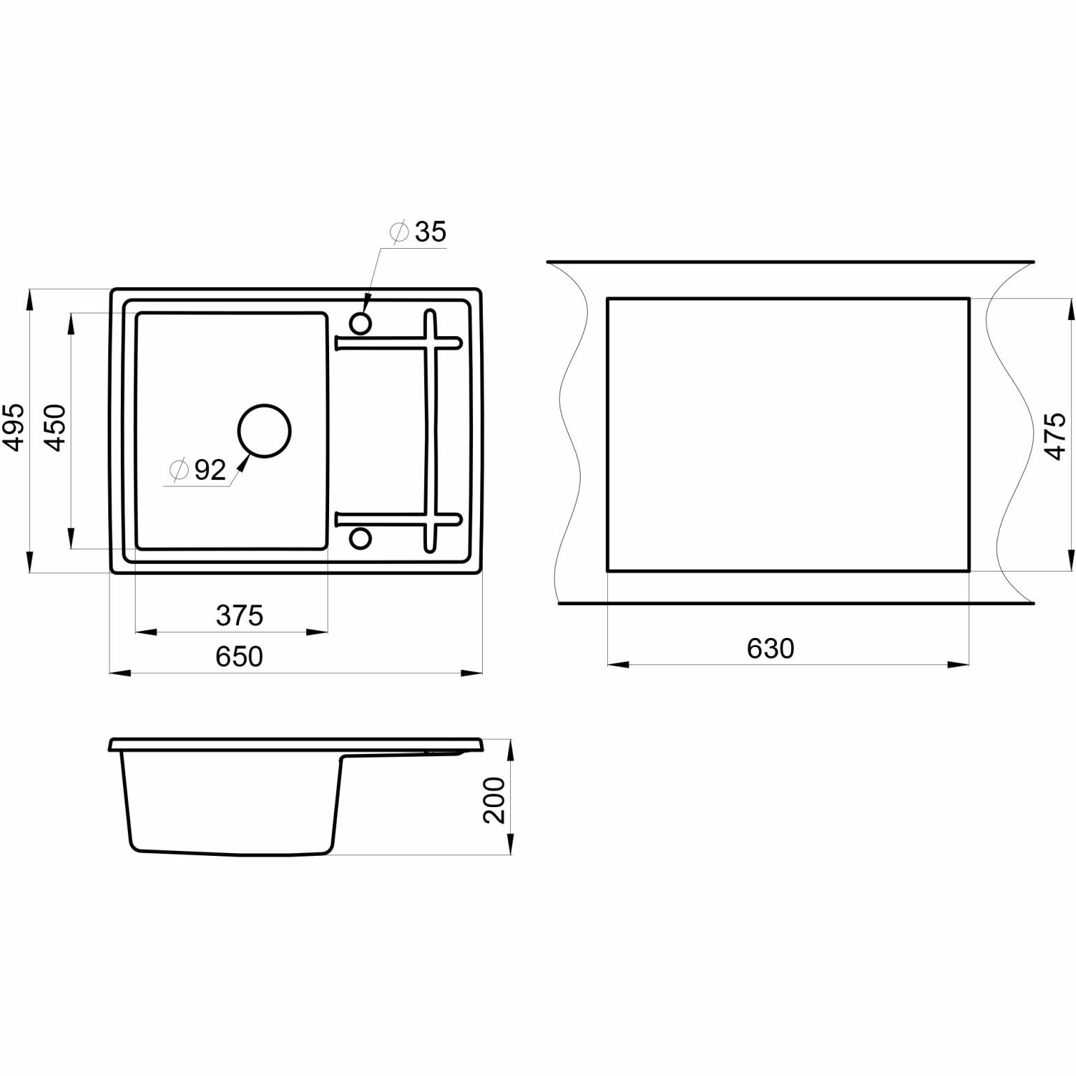Кухонная мойка GR-6501 650*495мм черный