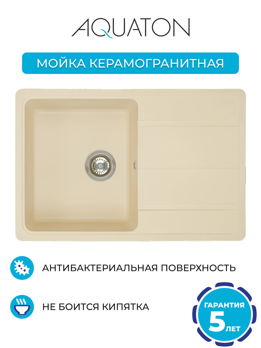 Мойка керамогранитная Aquaton Аманда (780х211х510) одинарная с крылом, жемчуг 1A712832AD240
